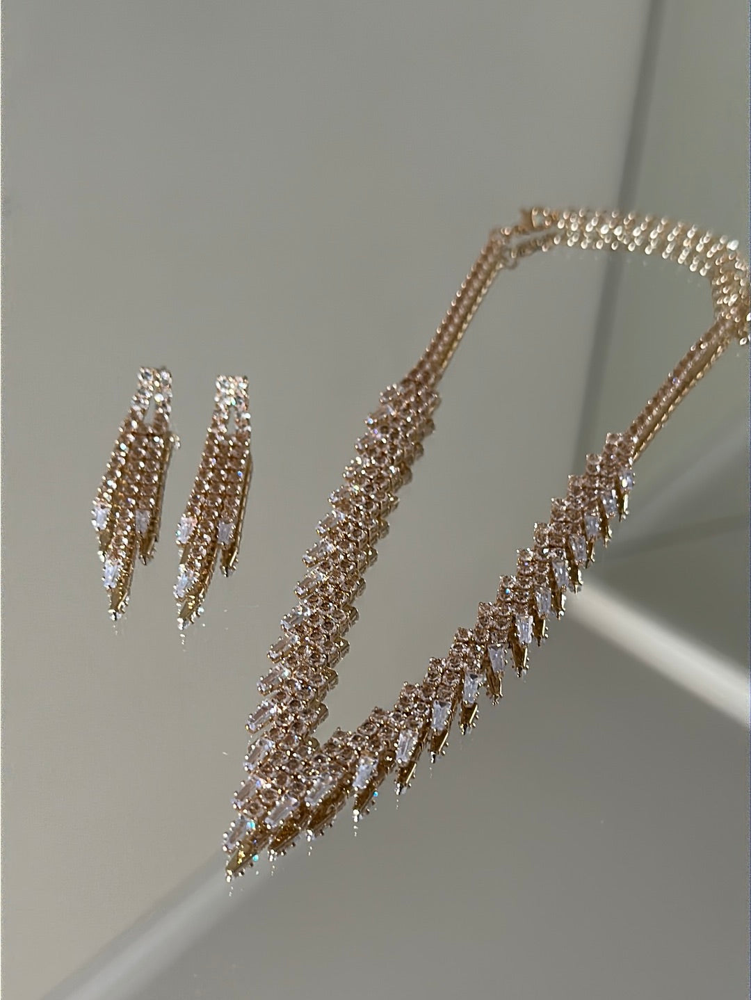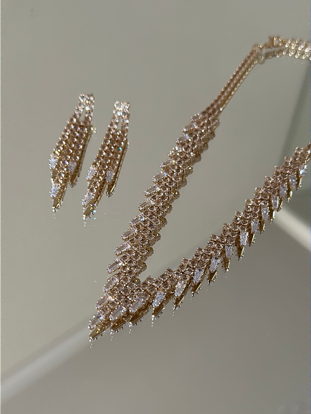 Sumérgete en la resplandeciente elegancia con nuestro deslumbrante conjunto de aro y collar. Cada pieza es meticulosamente confeccionada para destacar tu estilo con un brillo excepcional. El strass de alto brillo añade un toque de lujo a cualquier ocasión, ya sea una cena especial, una boda o una noche de gala. Nuestro conjunto es el accesorio perfecto para elevar tu look y deslumbrar con una sofisticación única. Descubre cómo estas joyas de strass realzan tu belleza natural y hacen que cada momento sea inolvidable. Experimenta la elegancia radiante que solo UNIQUE puede ofrecer. Añade un toque de distinción a tu colección de joyas y brilla con confianza en cualquier evento