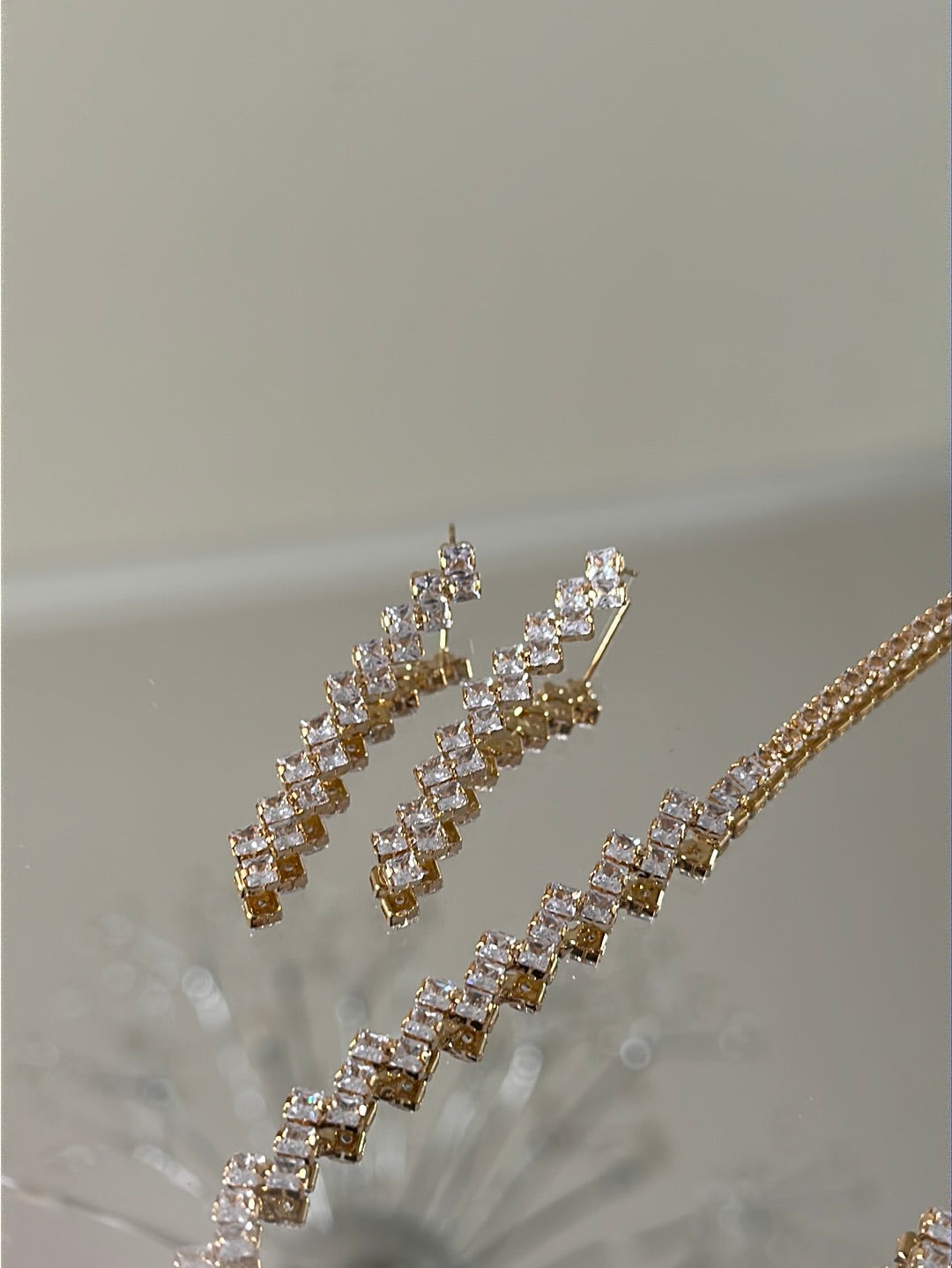 Sumérgete en la resplandeciente elegancia con nuestro deslumbrante conjunto de aro y collar. Cada pieza es meticulosamente confeccionada para destacar tu estilo con un brillo excepcional. El strass de alto brillo añade un toque de lujo a cualquier ocasión, ya sea una cena especial, una boda o una noche de gala. Nuestro conjunto es el accesorio perfecto para elevar tu look y deslumbrar con una sofisticación única. Descubre cómo estas joyas de strass realzan tu belleza natural y hacen que cada momento sea inolvidable. Experimenta la elegancia radiante que solo UNIQUE puede ofrecer. Añade un toque de distinción a tu colección de joyas y brilla con confianza en cualquier evento