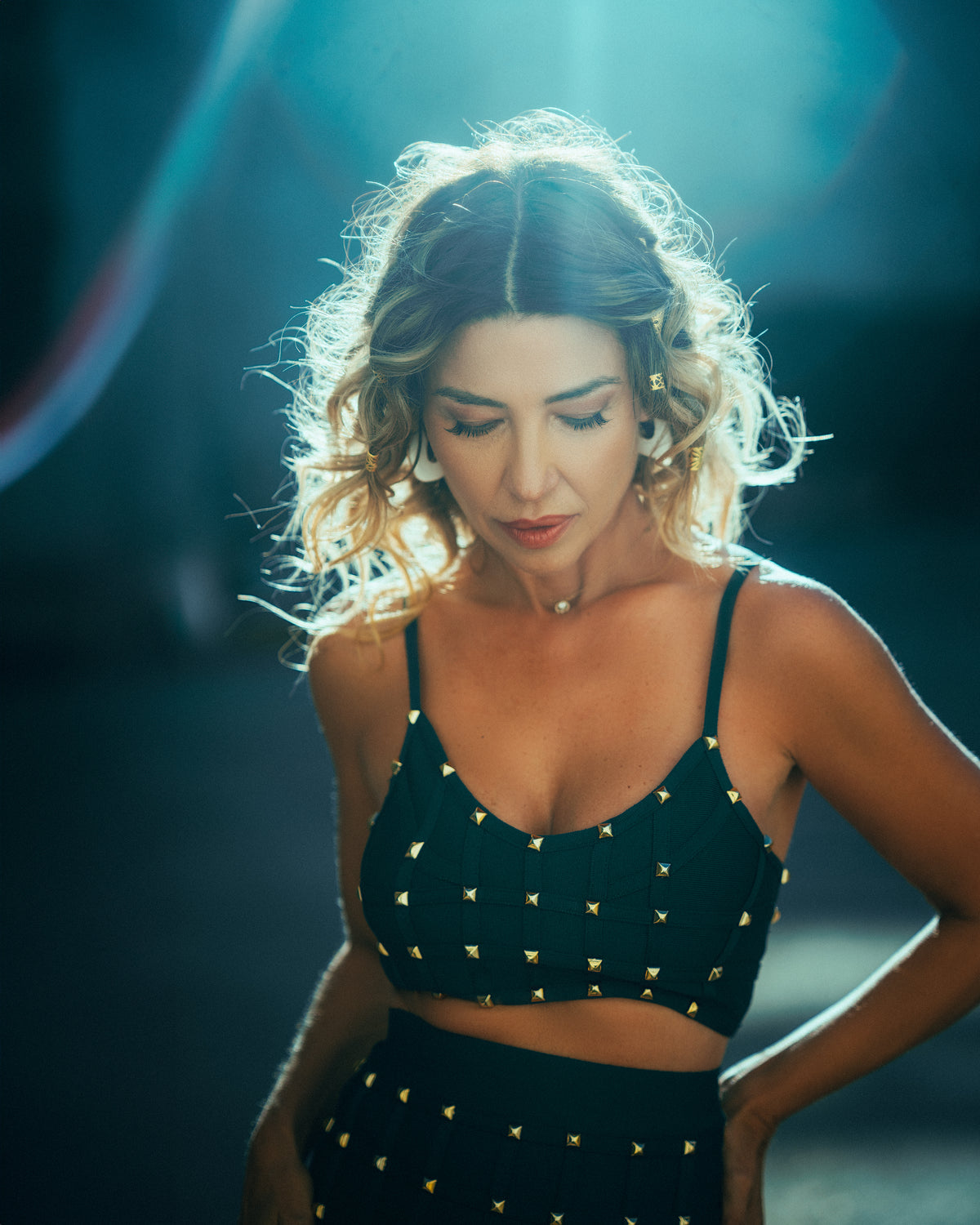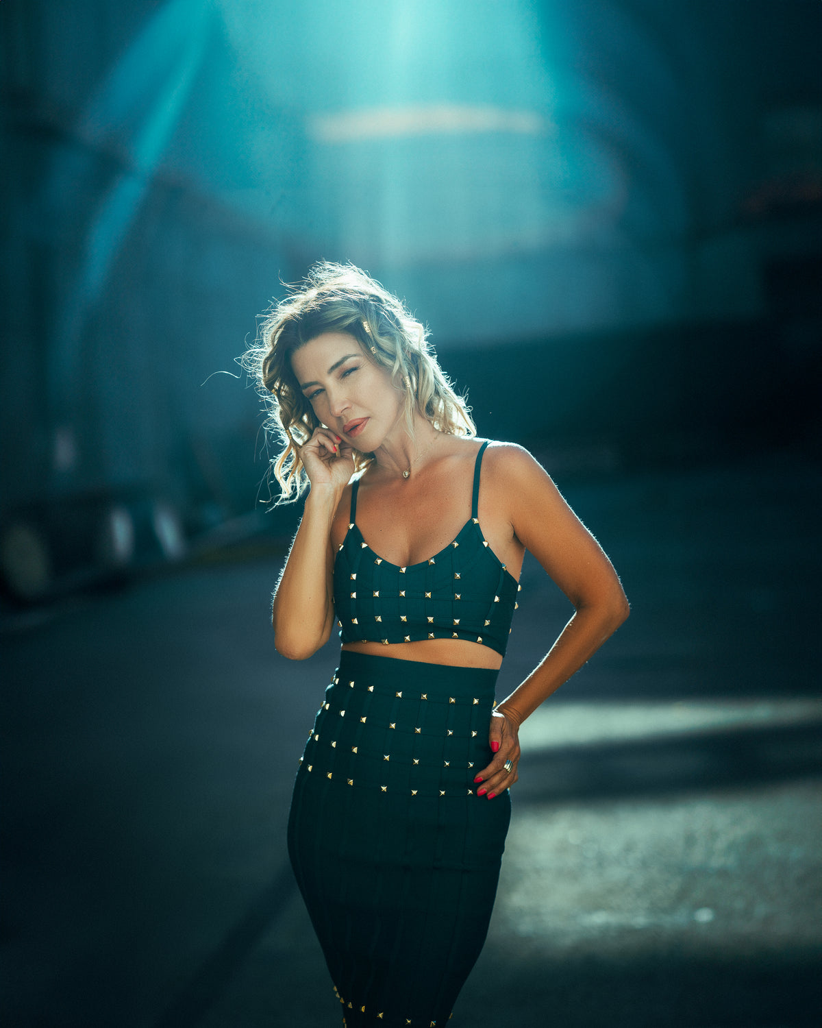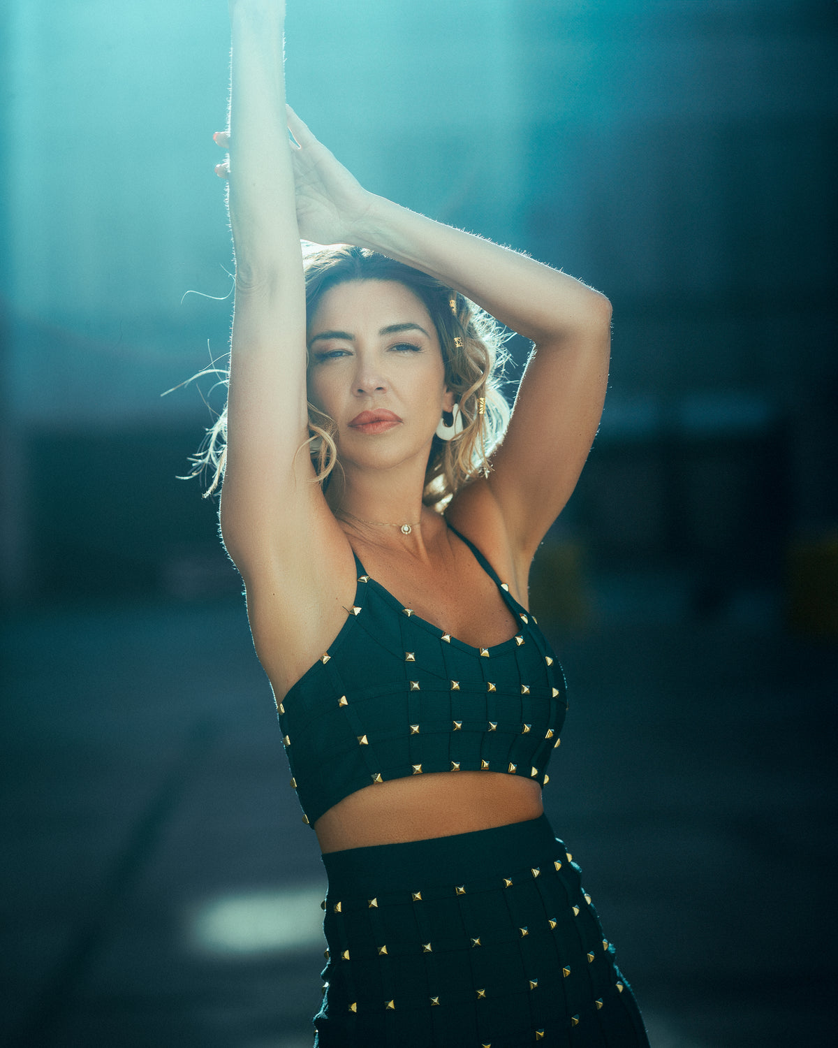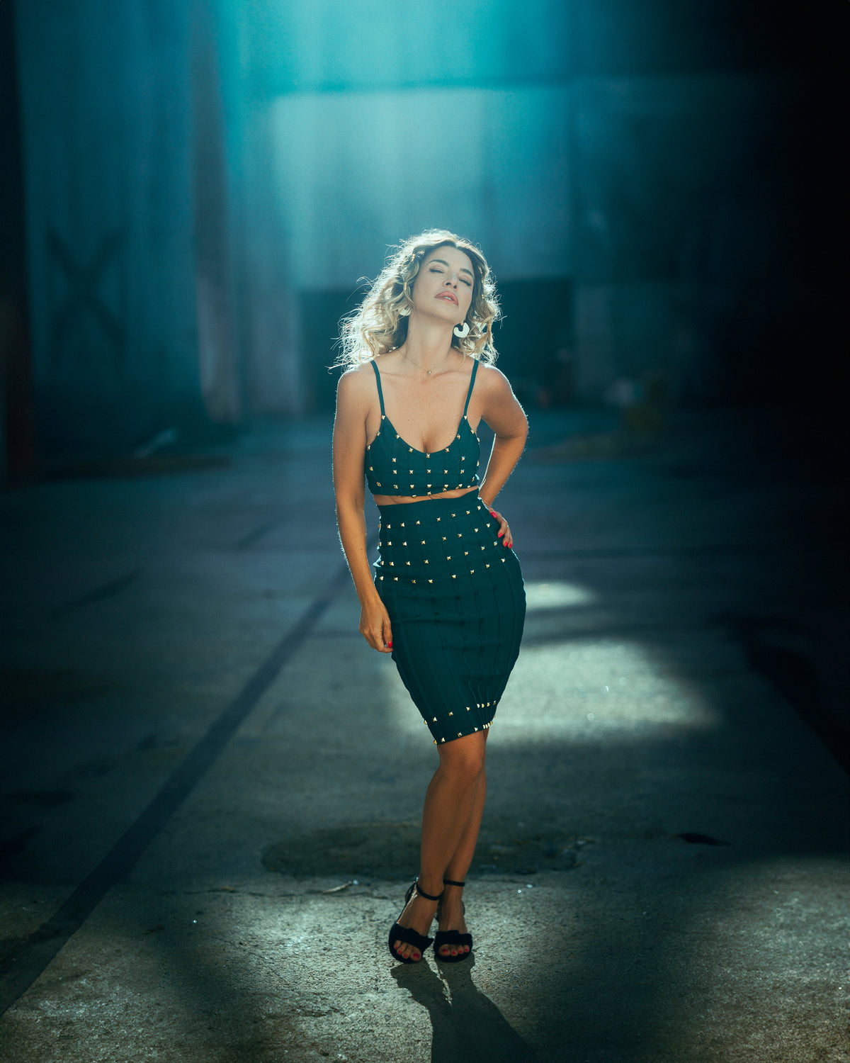 Peto y falta corto elasticado con cuello en U y finos tirantes.