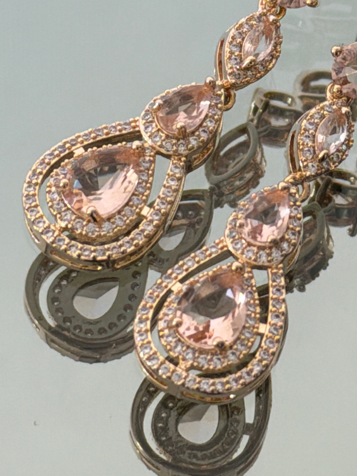 Pendiente largo dorado de 5 X 1,3 cm, totalmente con strass de gran brillo.
