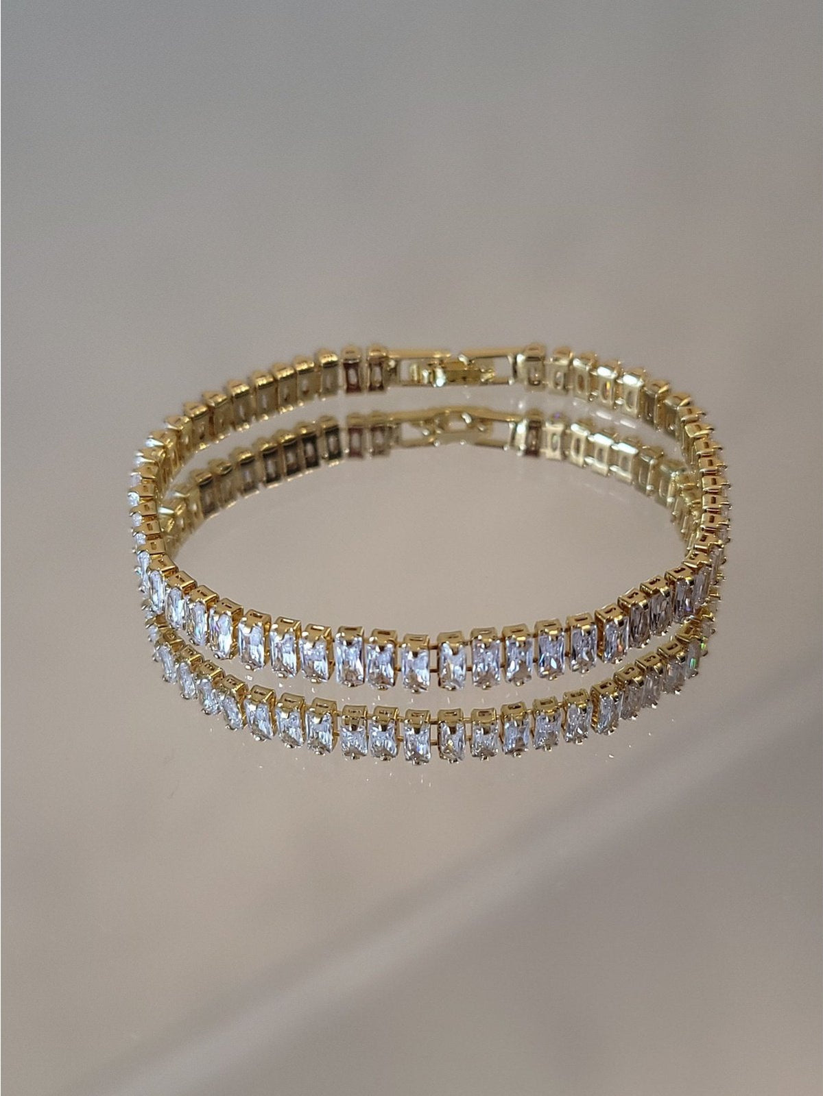 Pulsera de fiesta de 17 cm de largo color dordo, strass de alto brillo.