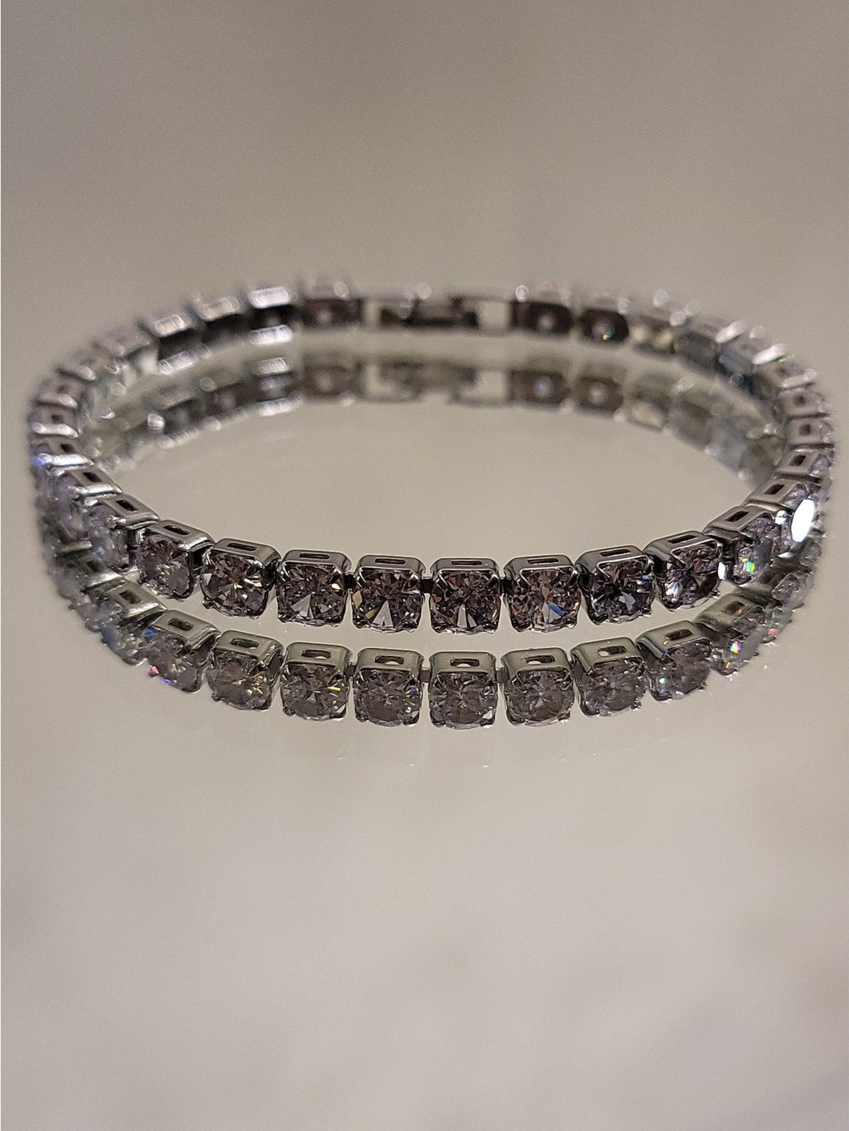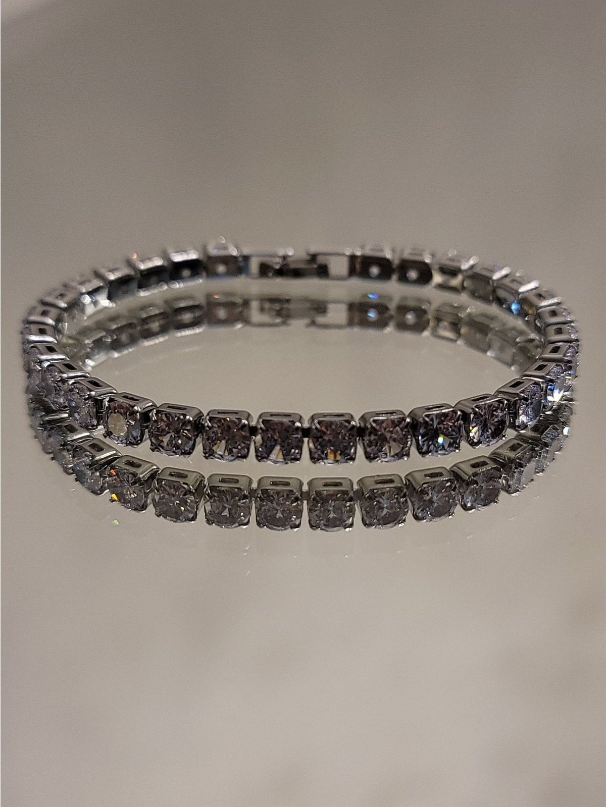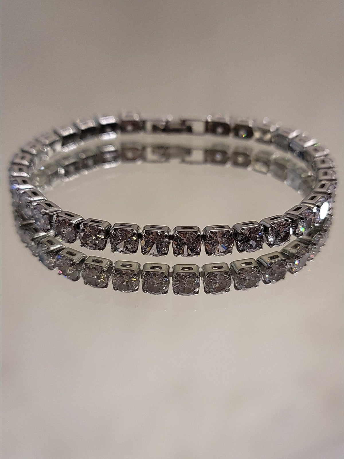 Pulsera de fiesta de 17 cm de largo color plateado, strass de alto brillo.