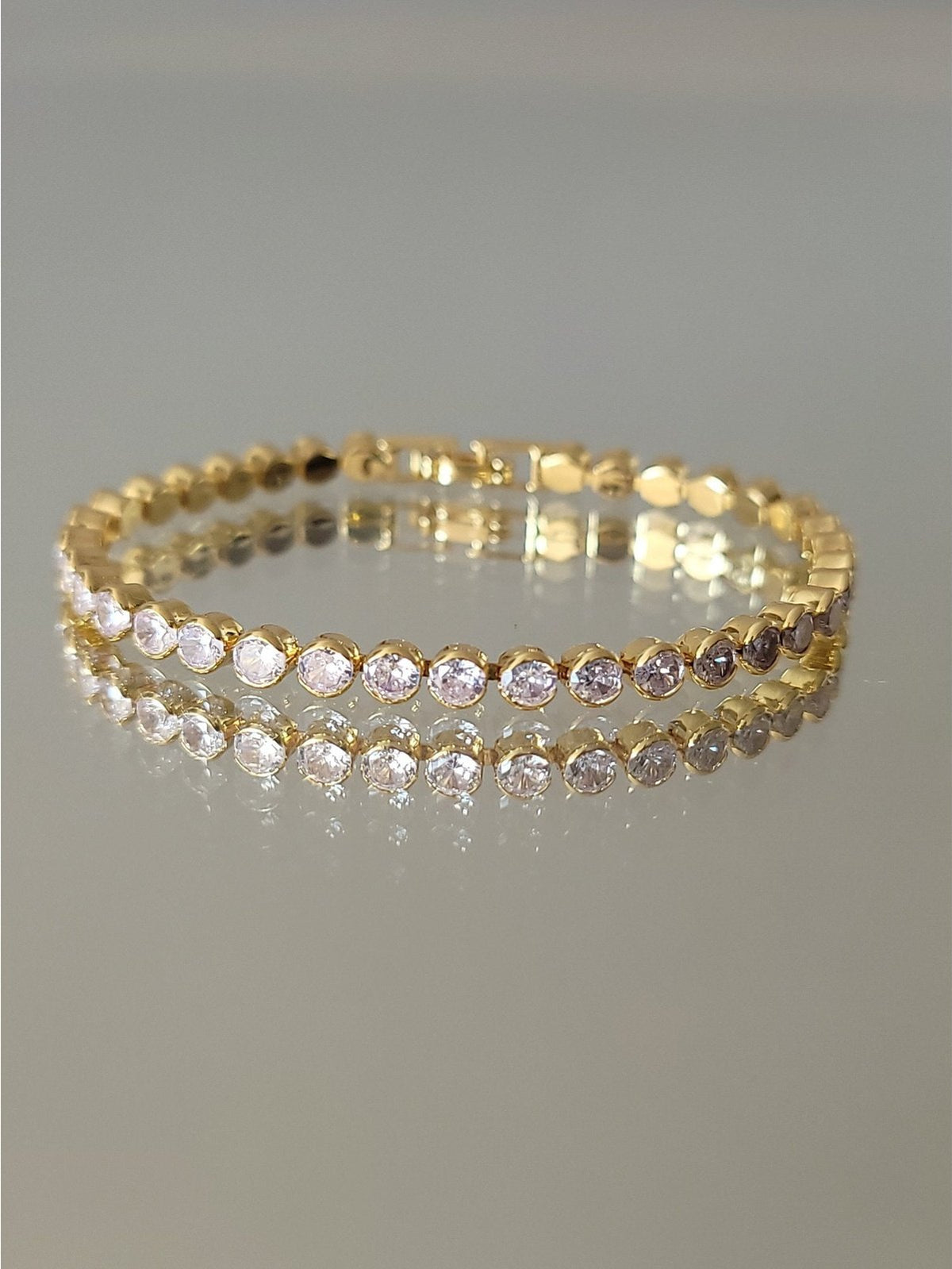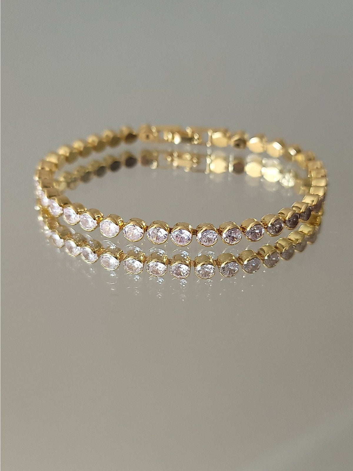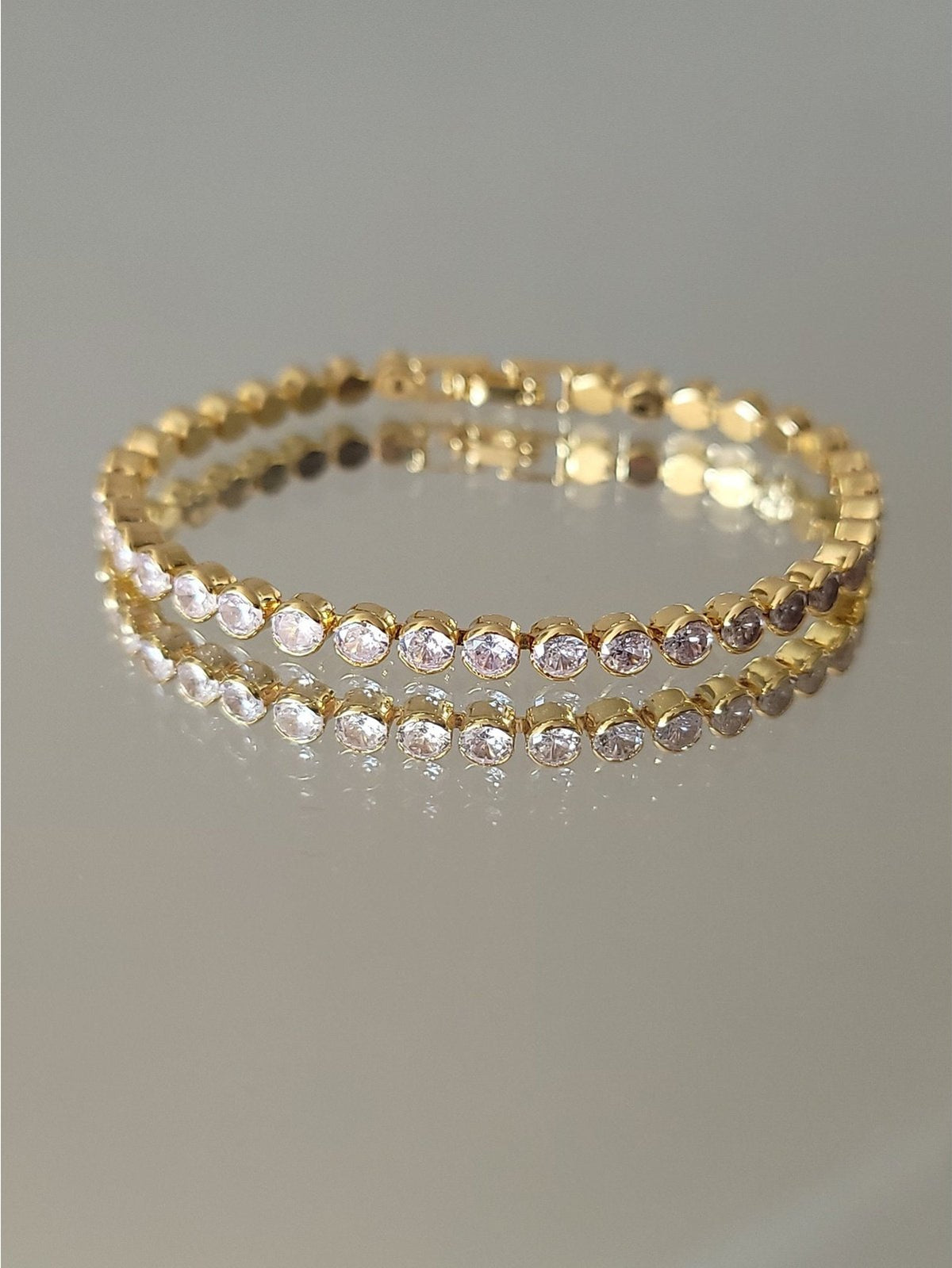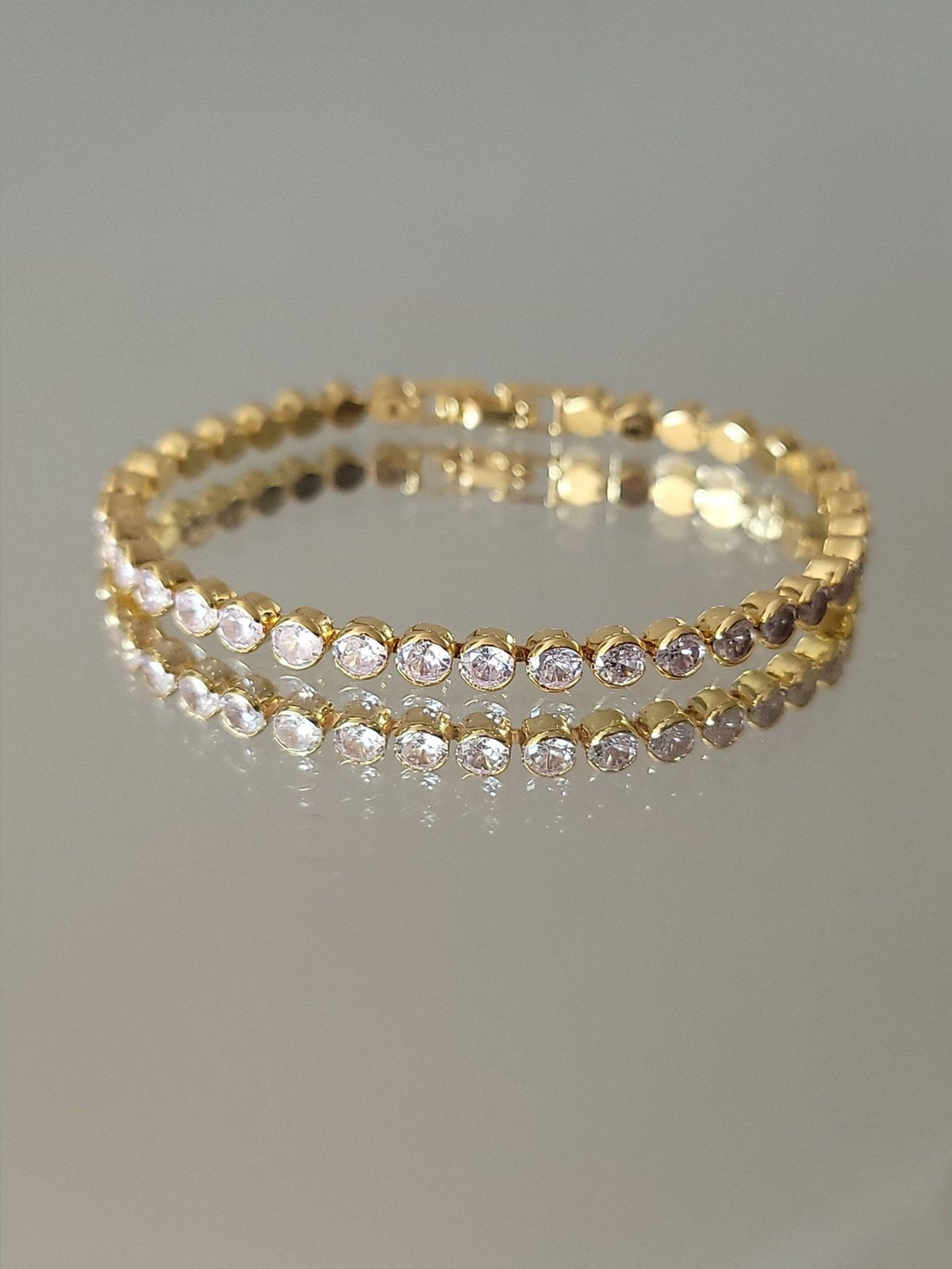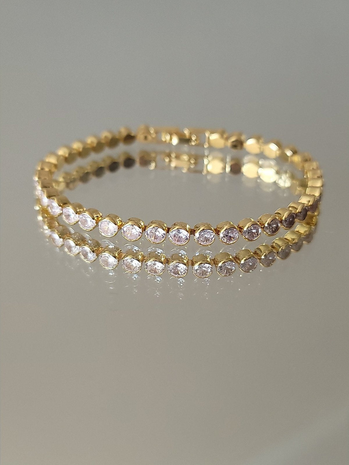 Pulsera de fiesta de 17 cm de largo color dordo, strass de alto brillo.