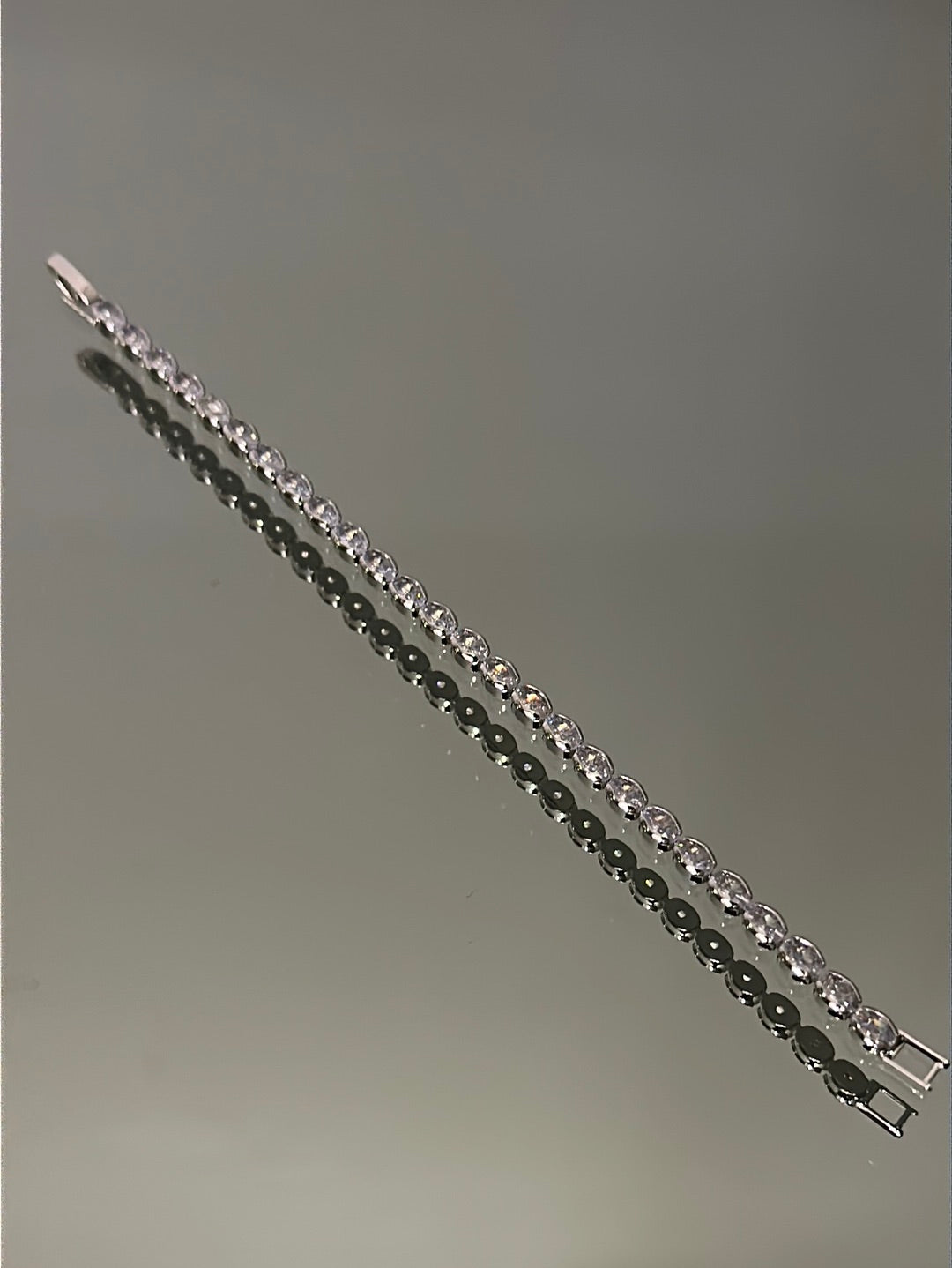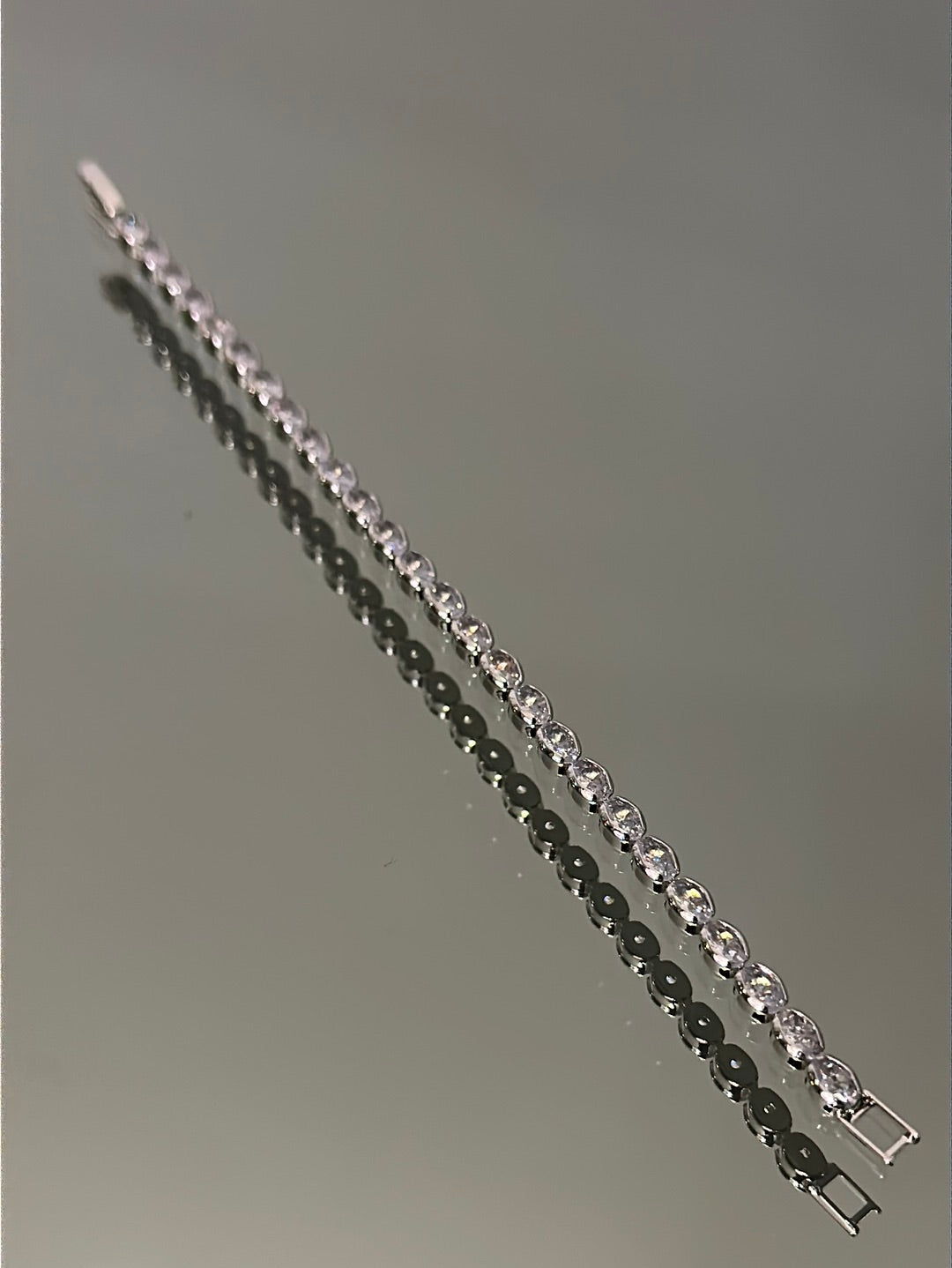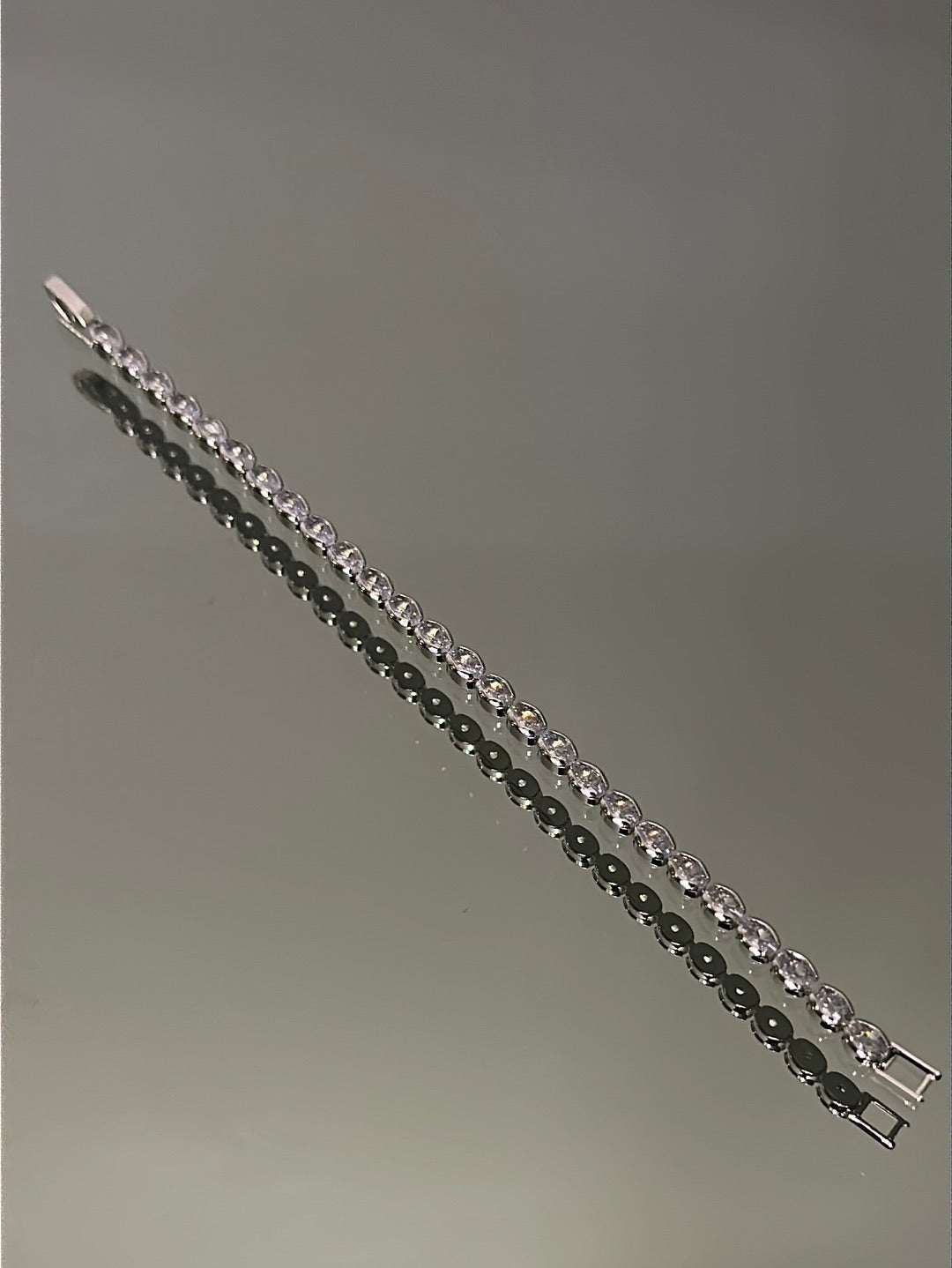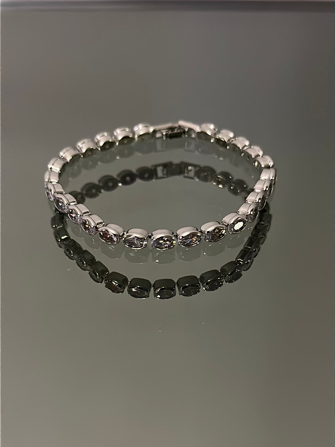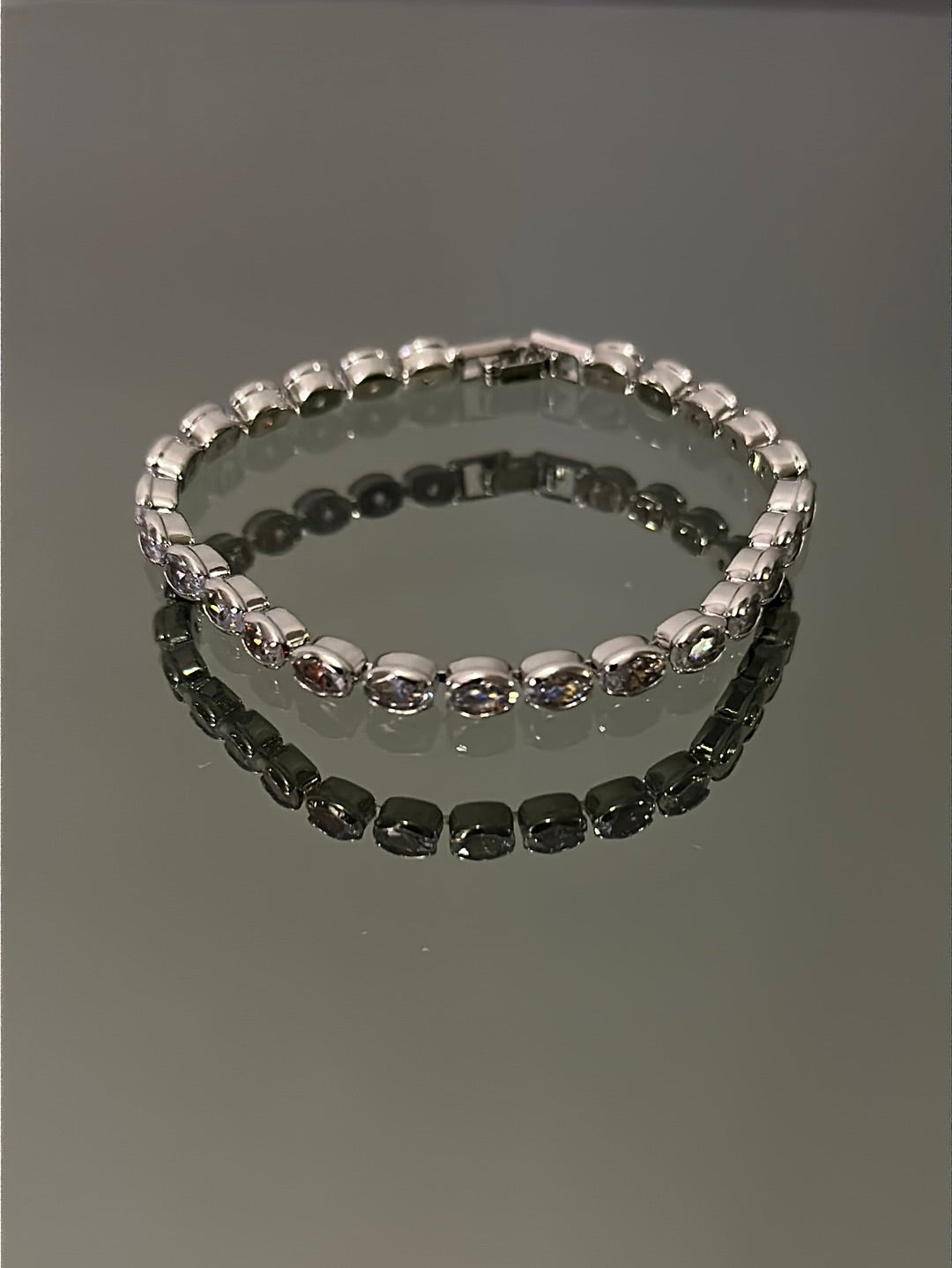 Pulsera de fiesta de 18,5 cm de largo color plateado, strass de alto brillo.