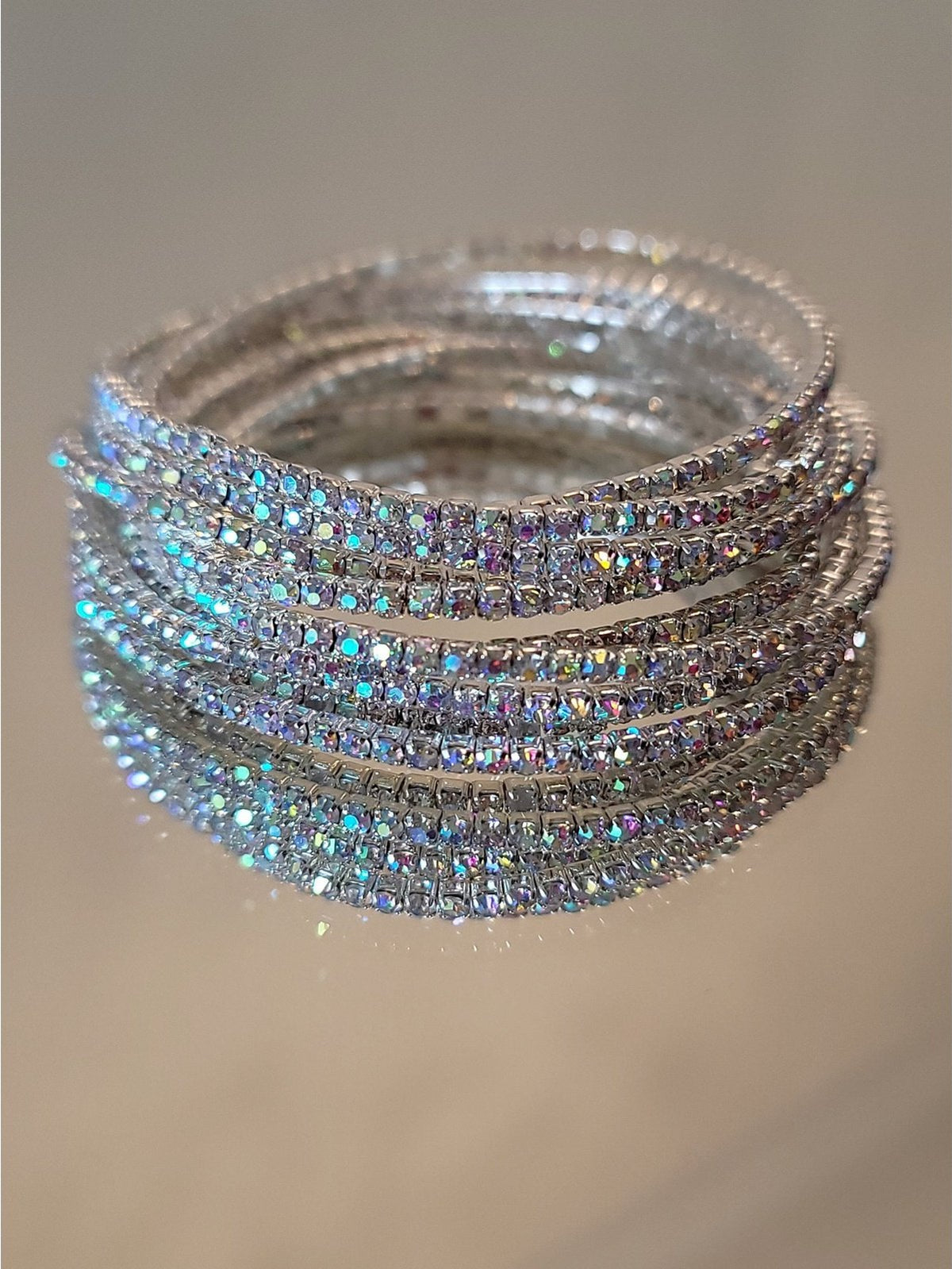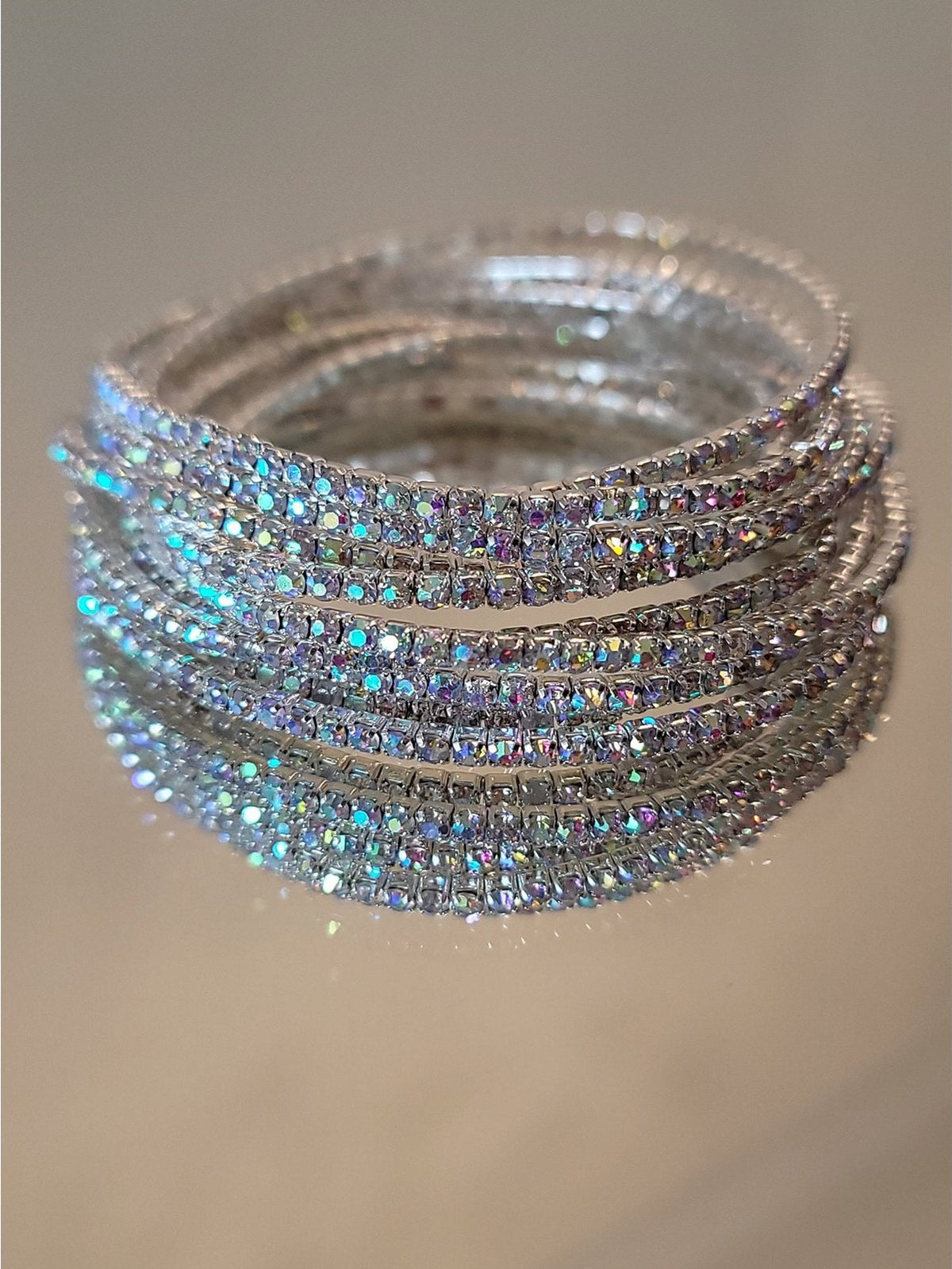 Pulsera de fiesta elasticada, strass de alto brillo.