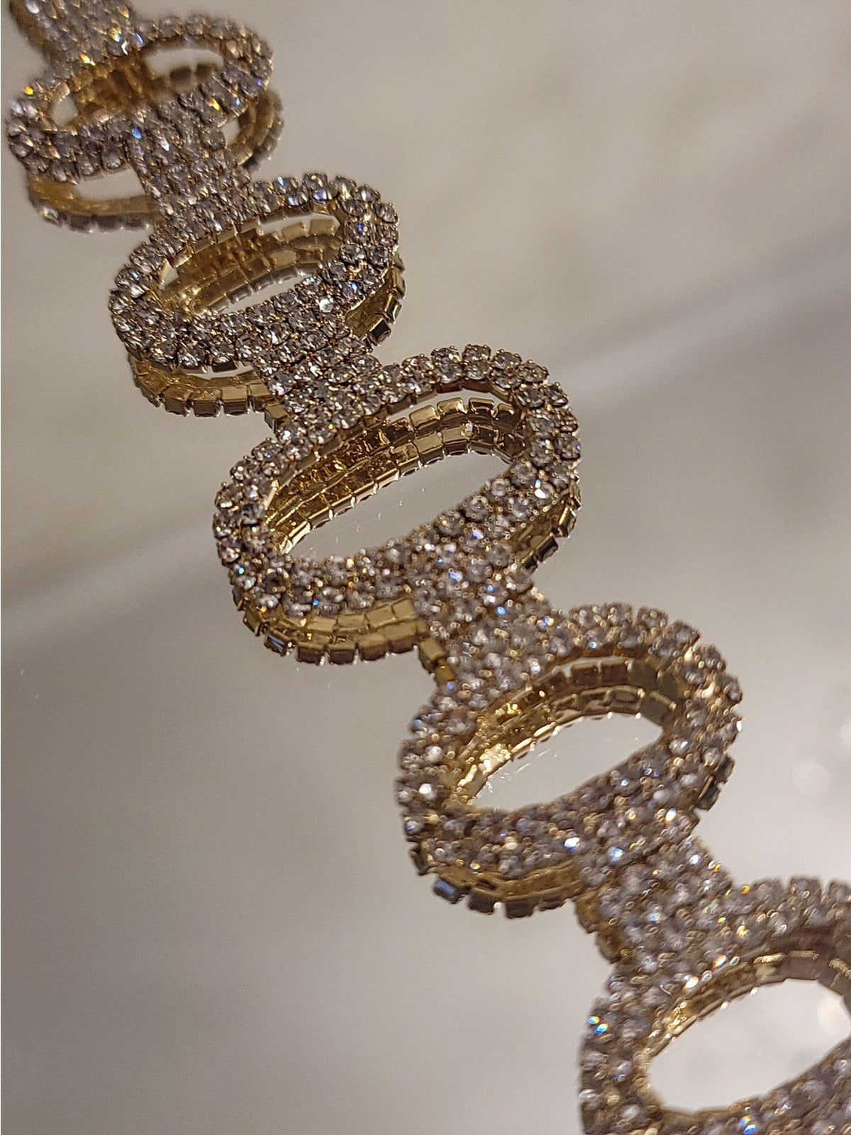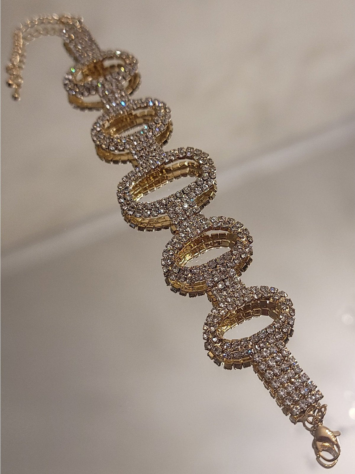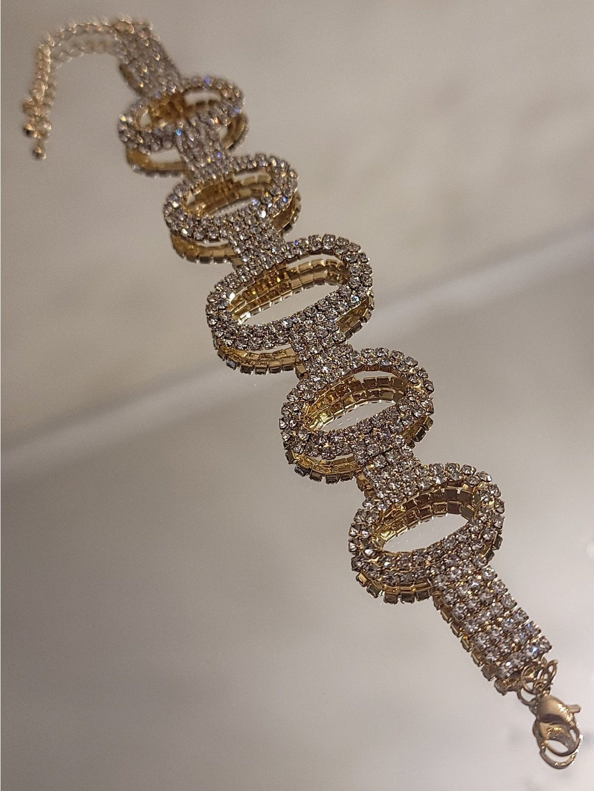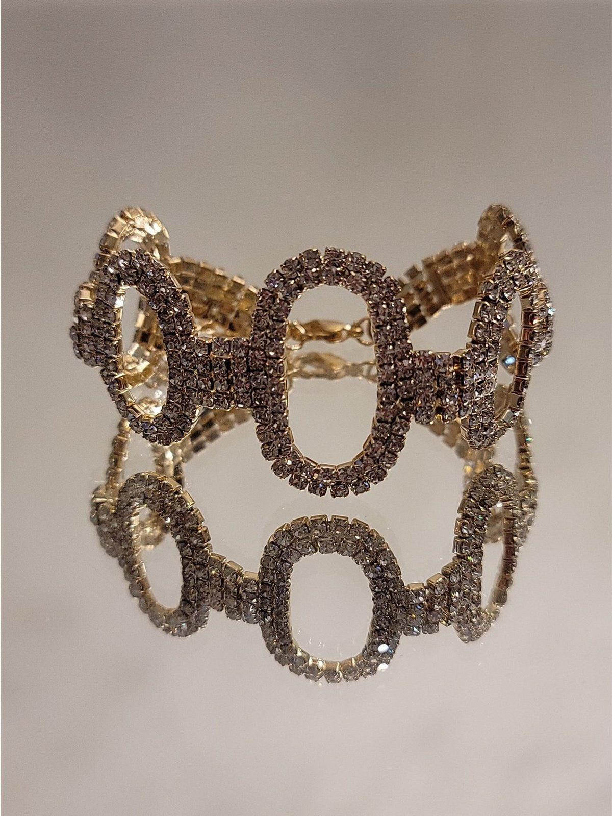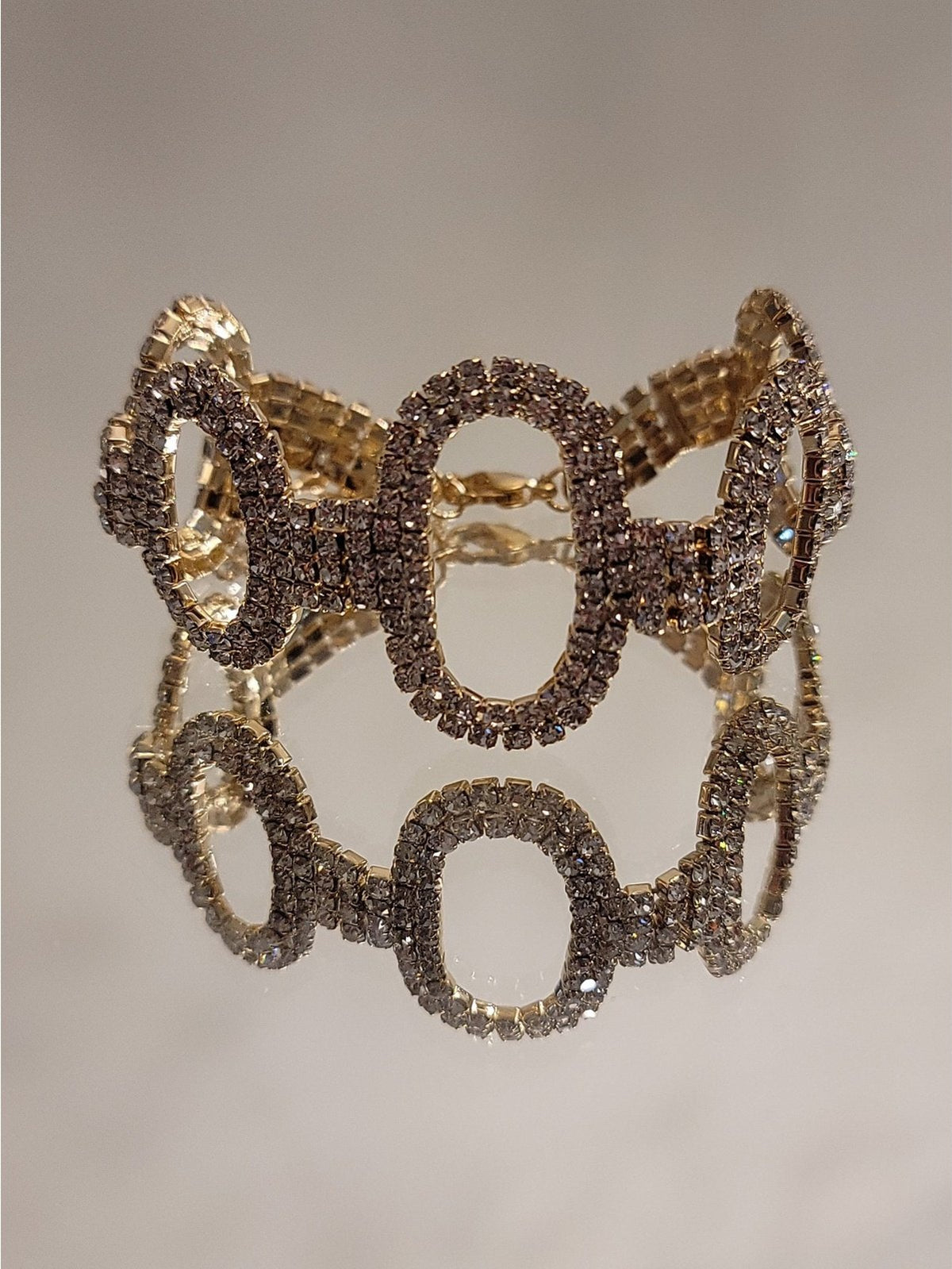 Pulsera de fiesta ajustable, strass de alto brillo.
