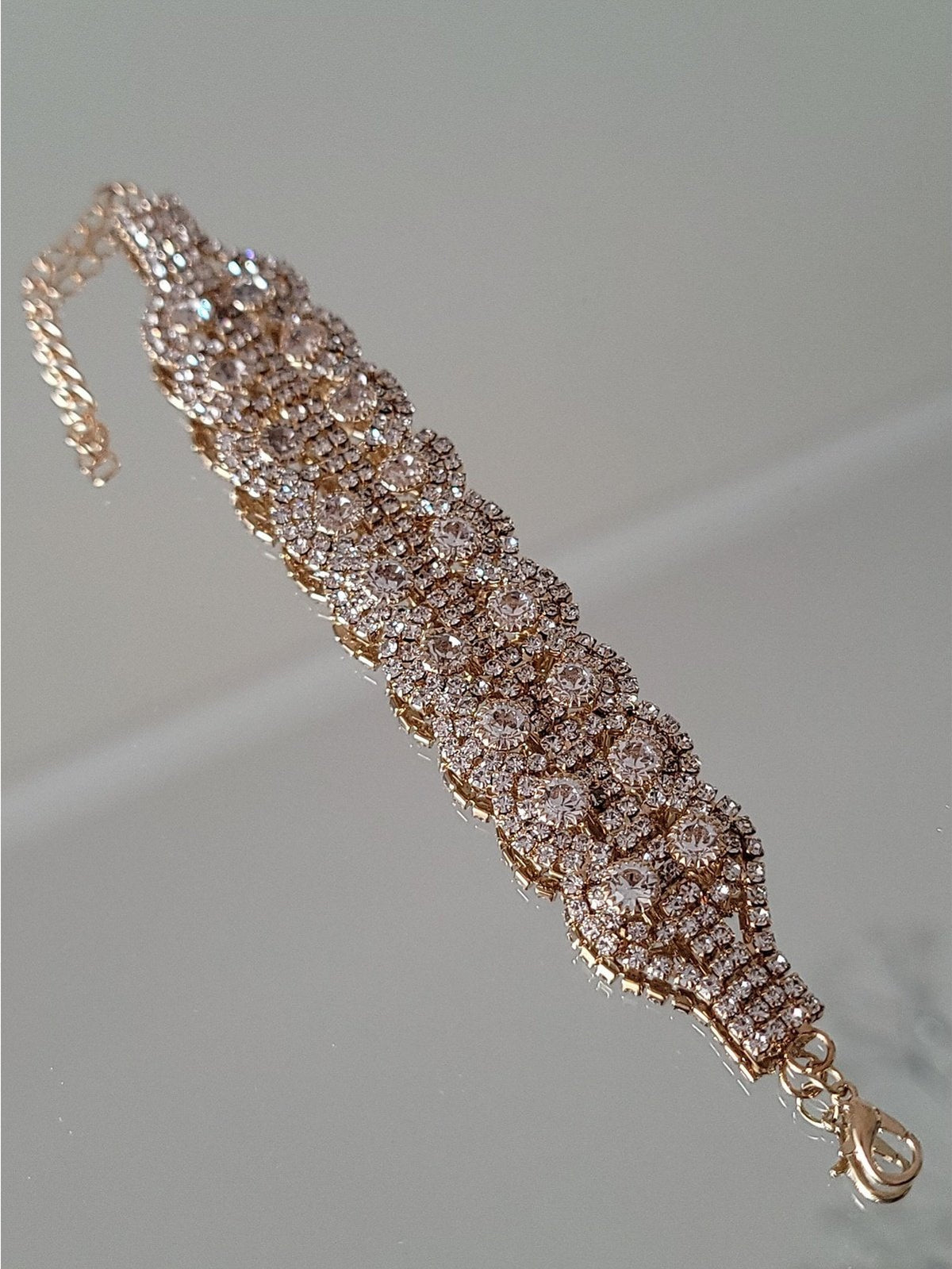 Pulsera de fiesta ajustable, strass de alto brillo.