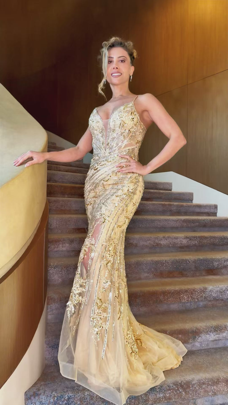 VESTIDO LARGO ETERNAL GLOW CHAMPAGNE