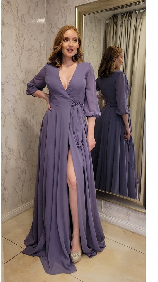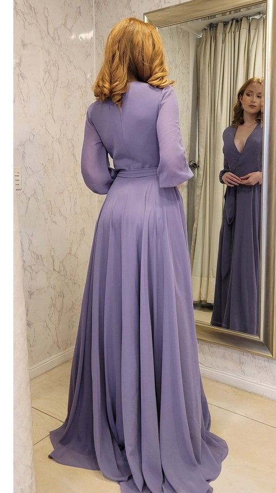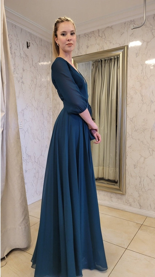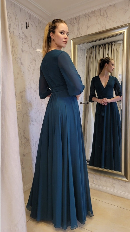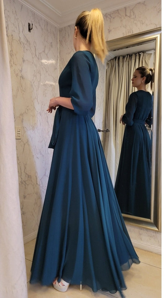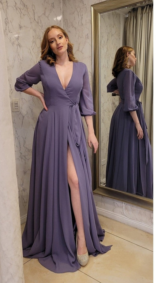 Vestido de gasa suelto con caída recta y mangas, ideal para un evento de tarde noche. Quedarás súper bien vestida y elegante!