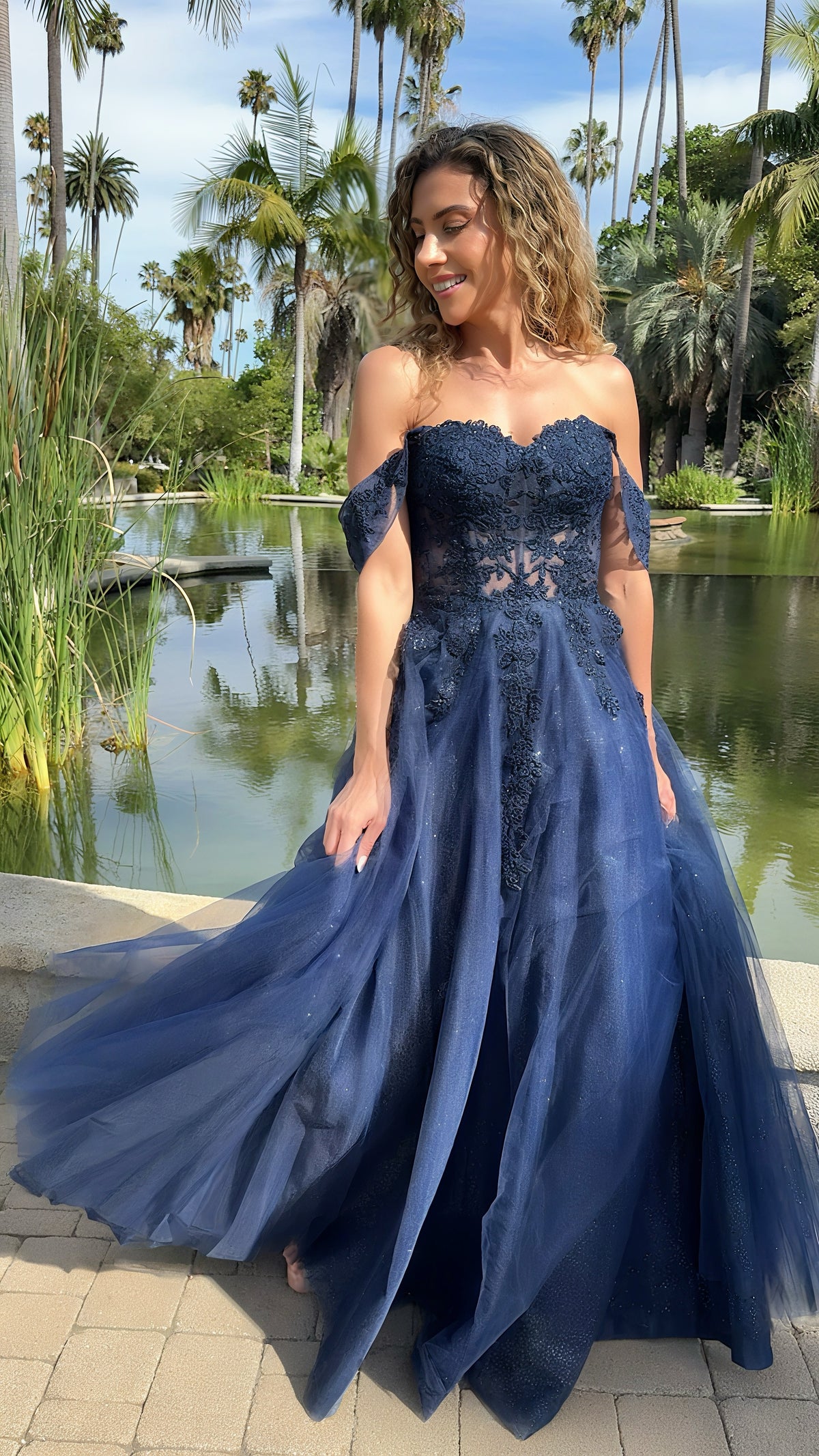 Si alguna vez soñaste con entrar a una gala como una verdadera reina… este es el vestido. Su diseño con corset estructurado y escote corazón realza el busto con delicadeza, mientras que los apliqués florales bordados caen con elegancia por el torso, alargando visualmente la figura. 💫