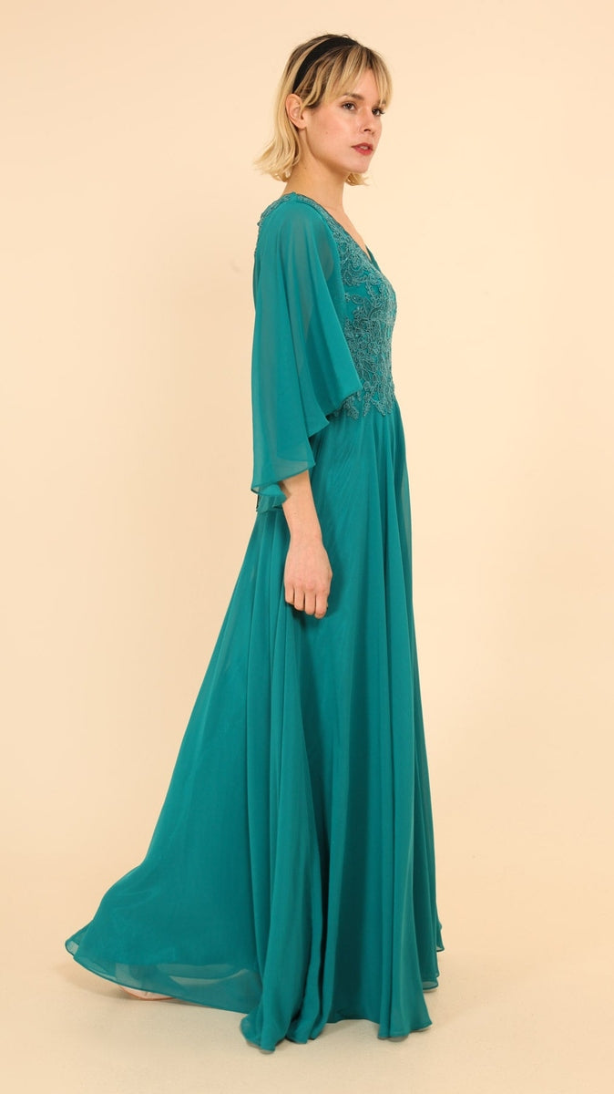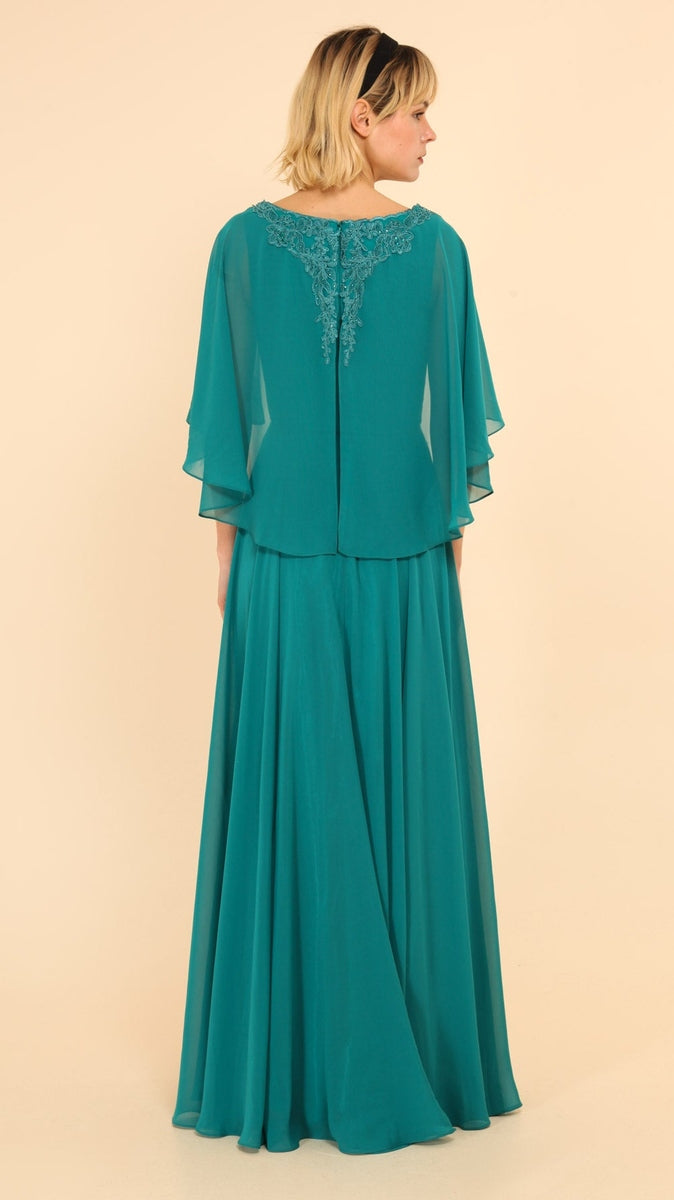 Vestido Largo de Madrina con Encaje, Strass y Capita Elegante