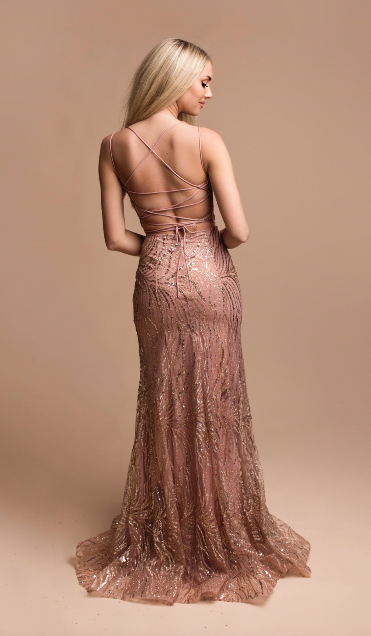 Déjate envolver por el lujo y el glamour con este vestido sirena en color rose gold, diseñado para impactar.