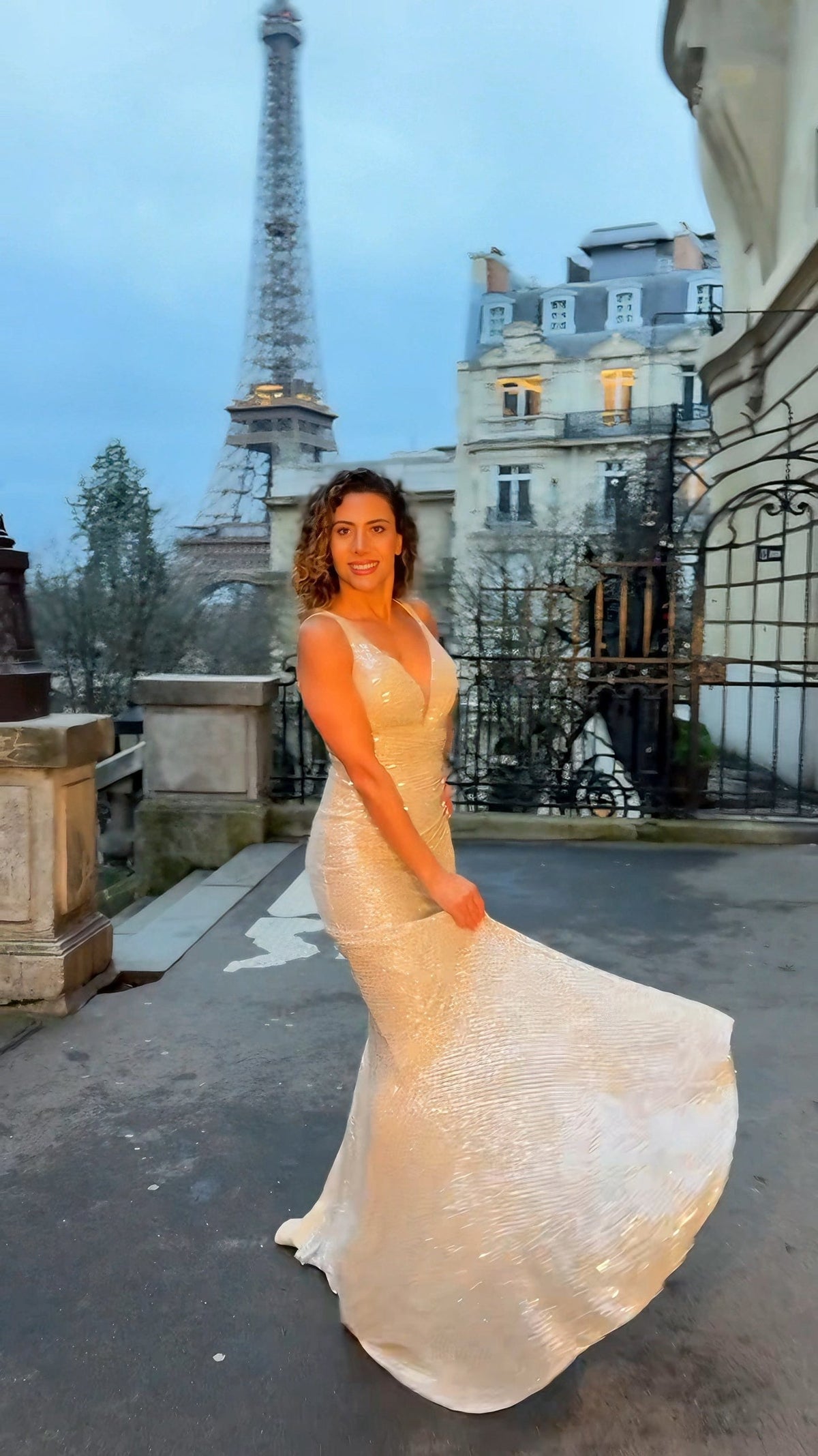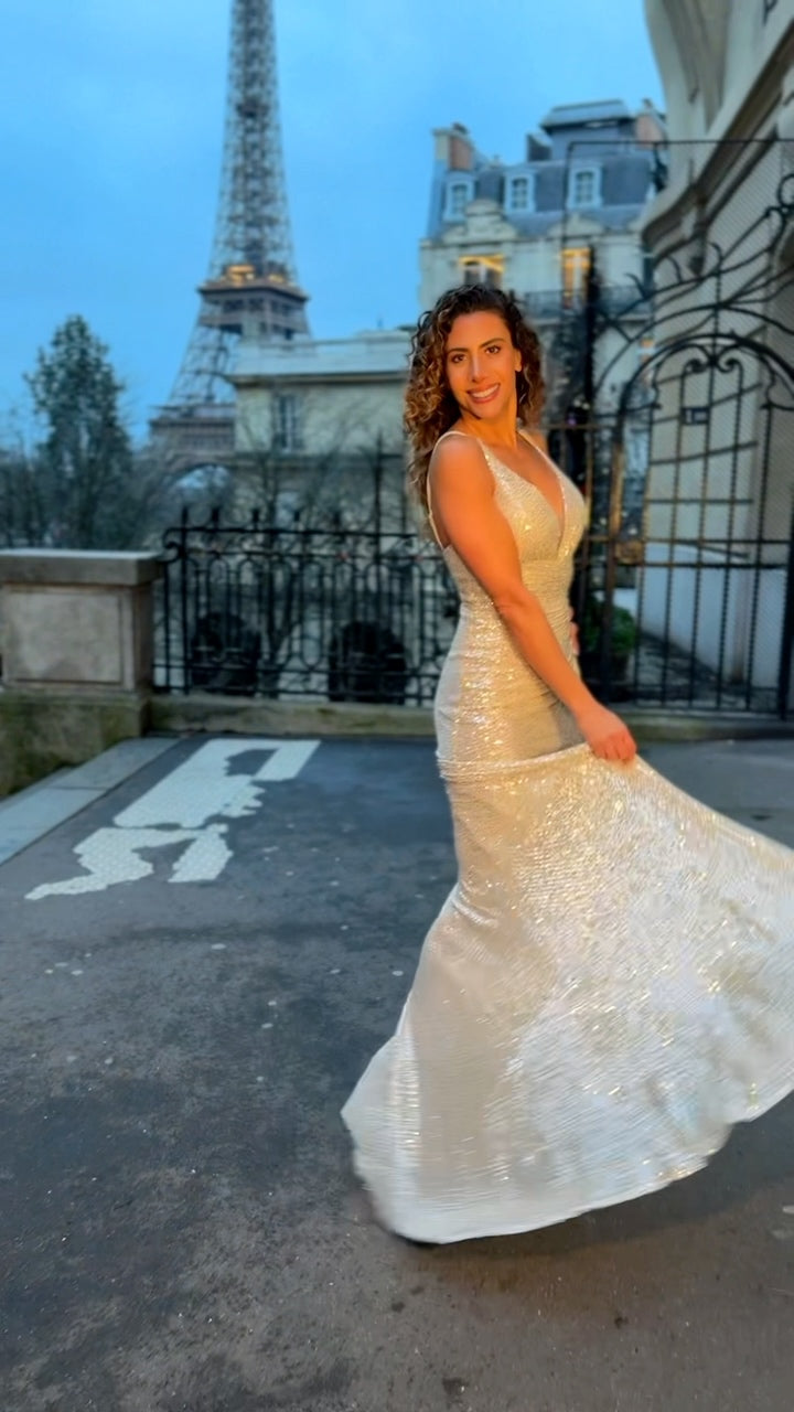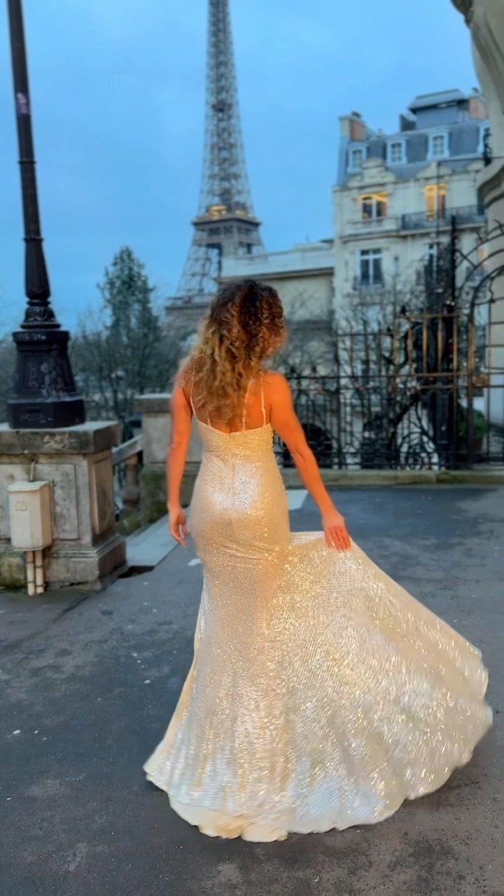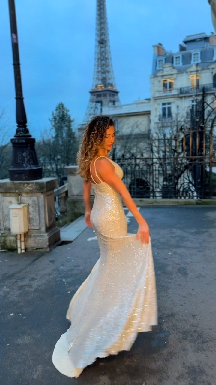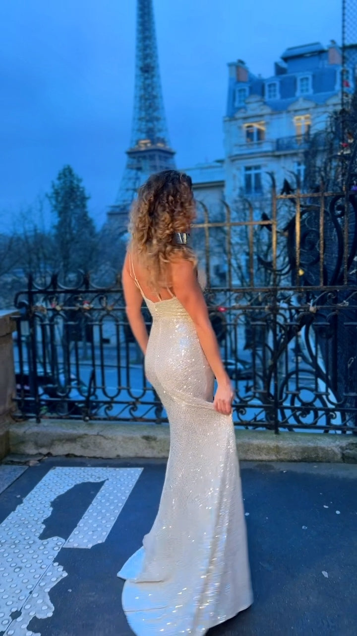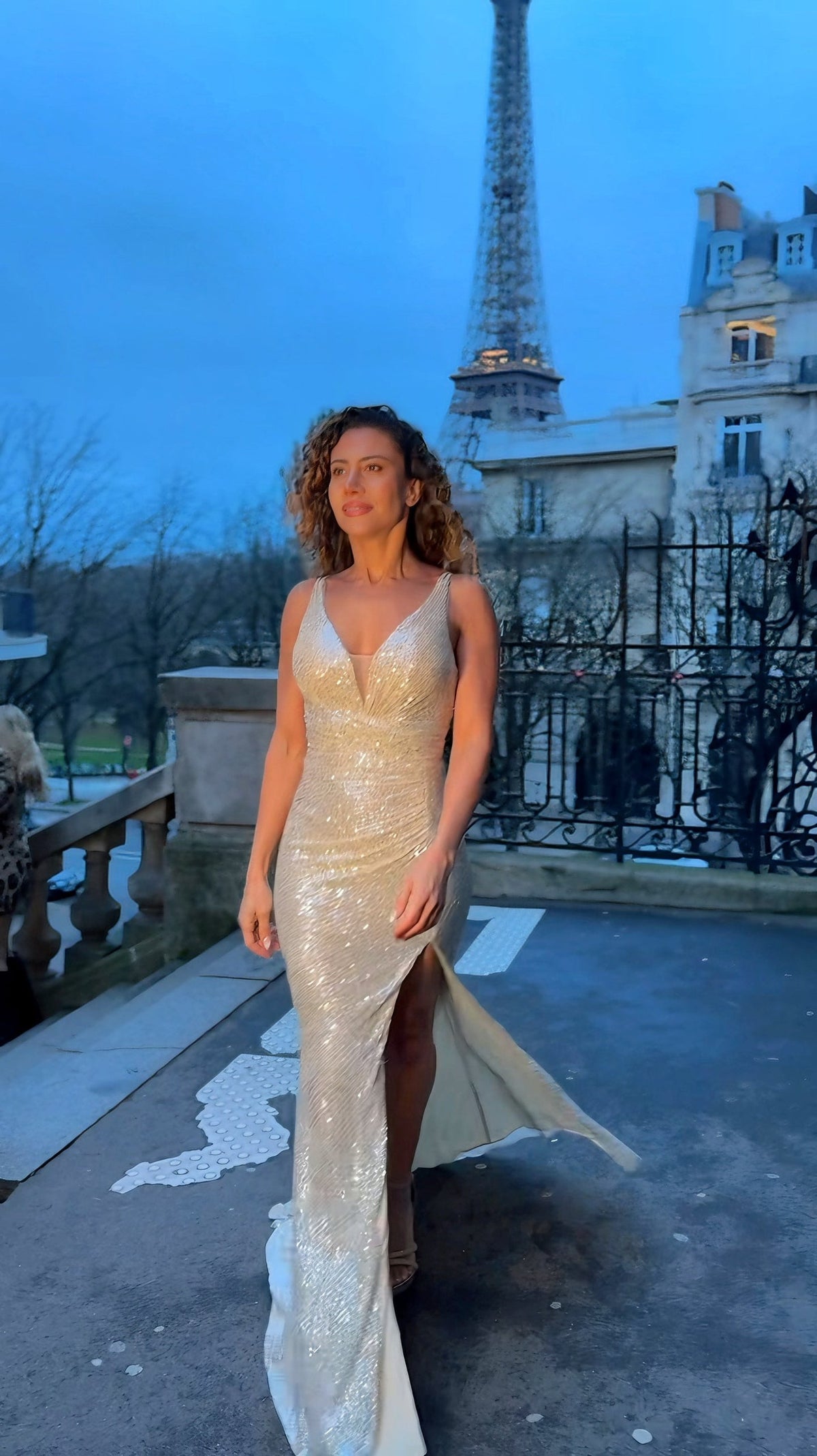 Un diseño que brilla con luz propia. Confeccionado en delicadas lentejuelas pequeñitas, este vestido es la definición de elegancia y sofisticación. Su escote en V estiliza la figura, mientras que la abertura añade un toque de sensualidad y movimiento. Perfecto para una noche inolvidable.