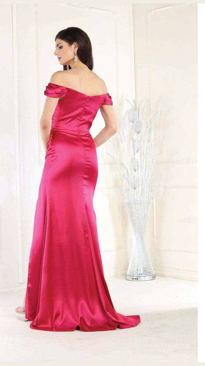 Sensualidad y glamour en un solo diseño. Este vestido largo de satén deslumbra con su escote off-shoulder que enmarca los hombros y cuello con elegancia, mientras el drapeado lateral moldea la figura y crea un efecto favorecedor. La abertura en la falda añade un toque atrevido y sofisticado, ideal para lucir piernas con estilo. Perfecto para galas, matrimonios de noche o cualquier evento donde quieras brillar con seguridad y clase. ✨