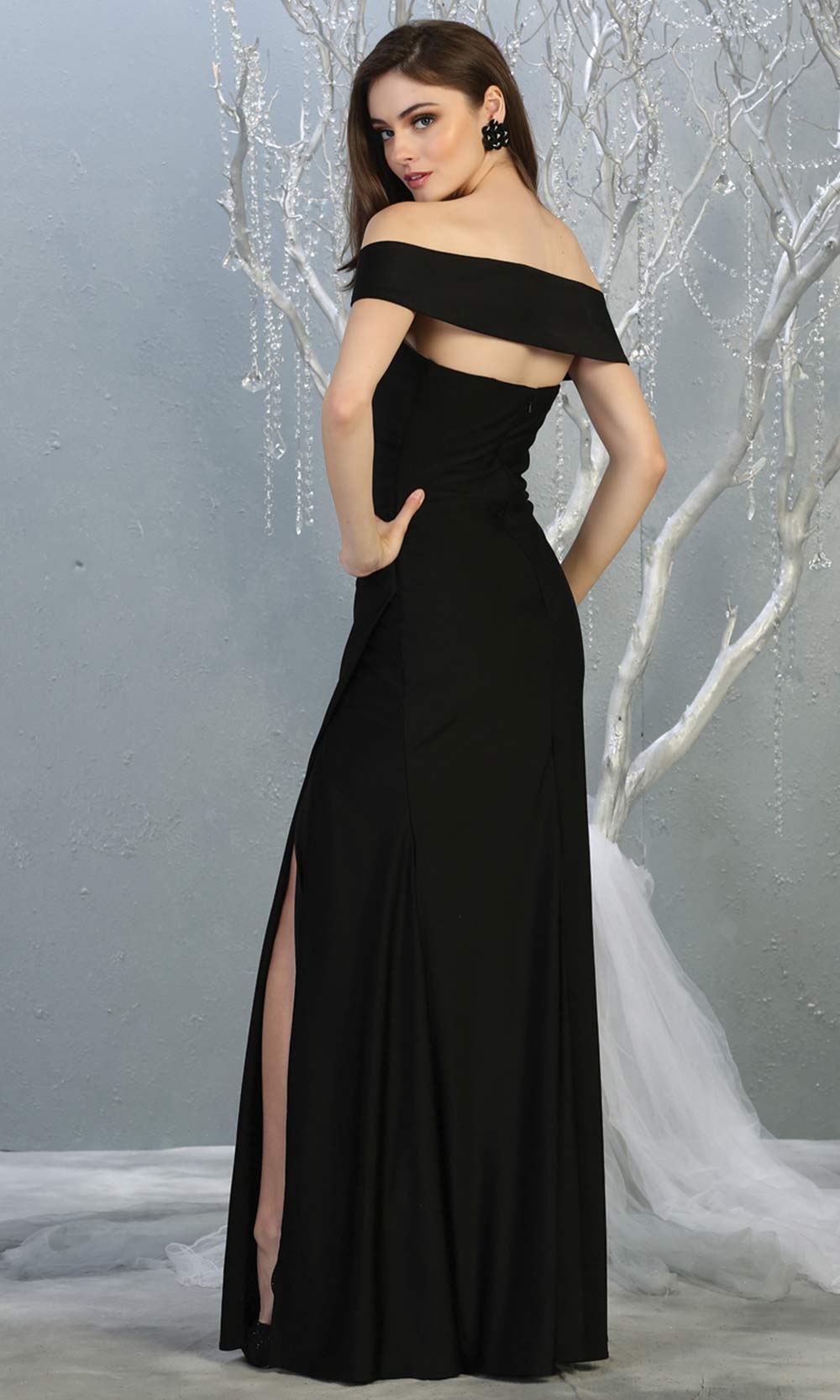 Este vestido largo Arabella en azul marino combina elegancia y sensualidad con su diseño ajustado y hombros caídos que realzan la figura. Confeccionado en lycra, ofrece comodidad y flexibilidad, mientras que el drapeado aporta un toque sofisticado. El sexy tajo añade un detalle atrevido, ideal para ocasiones especiales donde se busca destacar con estilo y confianza.