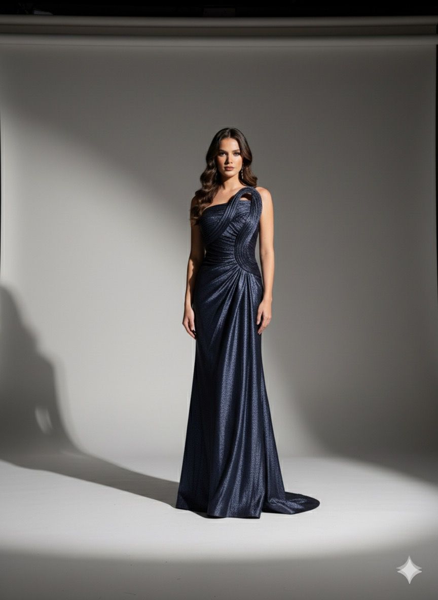 Un diseño que redefine la elegancia moderna. Este vestido asimétrico combina estructura y sensualidad en un juego de drapeados que se ajustan al cuerpo con precisión escultórica. Su silueta realza la figura con un efecto envolvente que culmina en una abertura lateral, añadiendo movimiento y un toque de audacia. El tejido, con sutiles reflejos metálicos, aporta profundidad y un brillo sofisticado que resalta cada curva con luz propia. Ideal para eventos de gala, alfombras rojas o celebraciones donde la sofisticación es protagonista.
