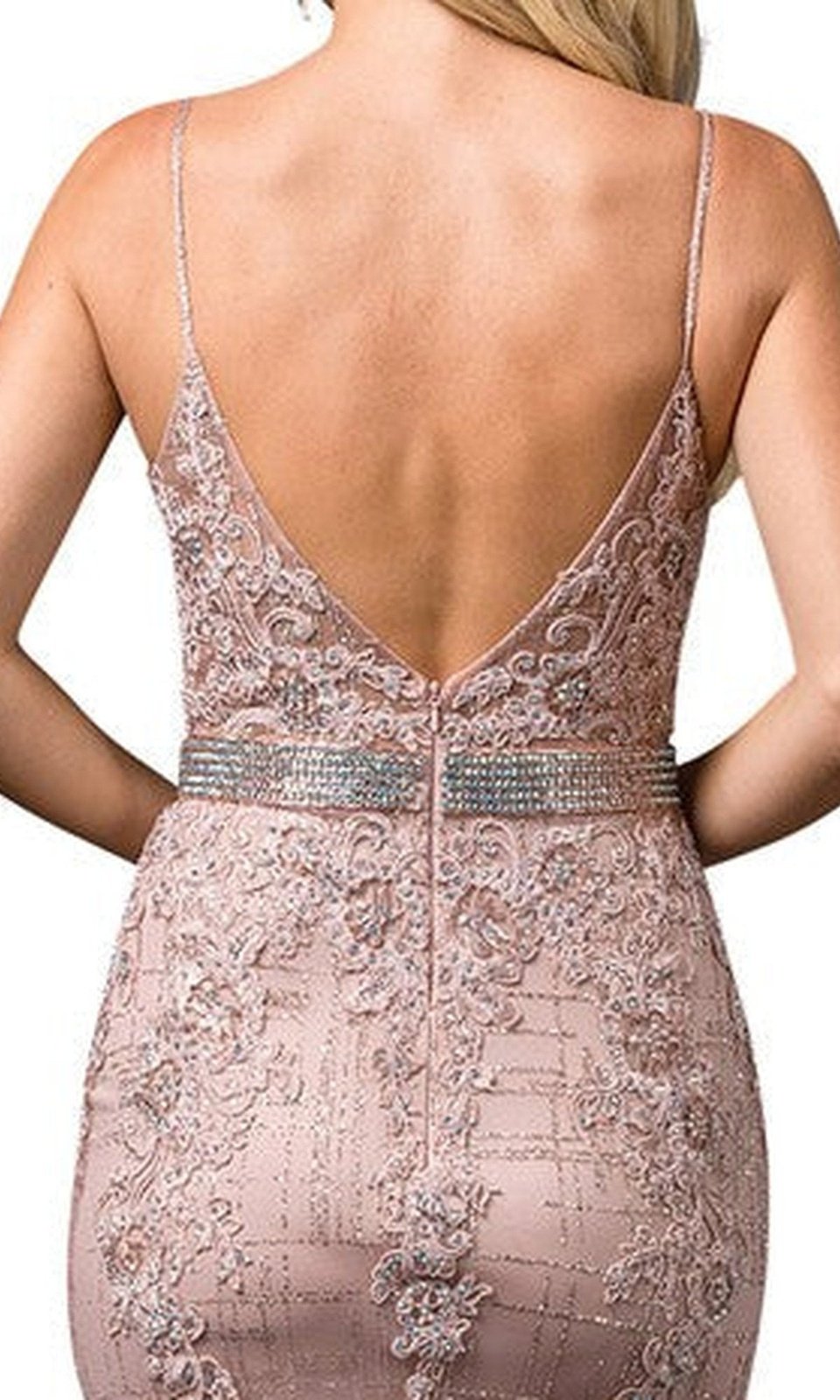 Vestido largo adornado seduce con un escote en V sin mangas y profundo con tirantes finos. El corpiño ajustado luce una espalda en V escotada. La falda favorece tu figura con una silueta ajustada y con vuelo.