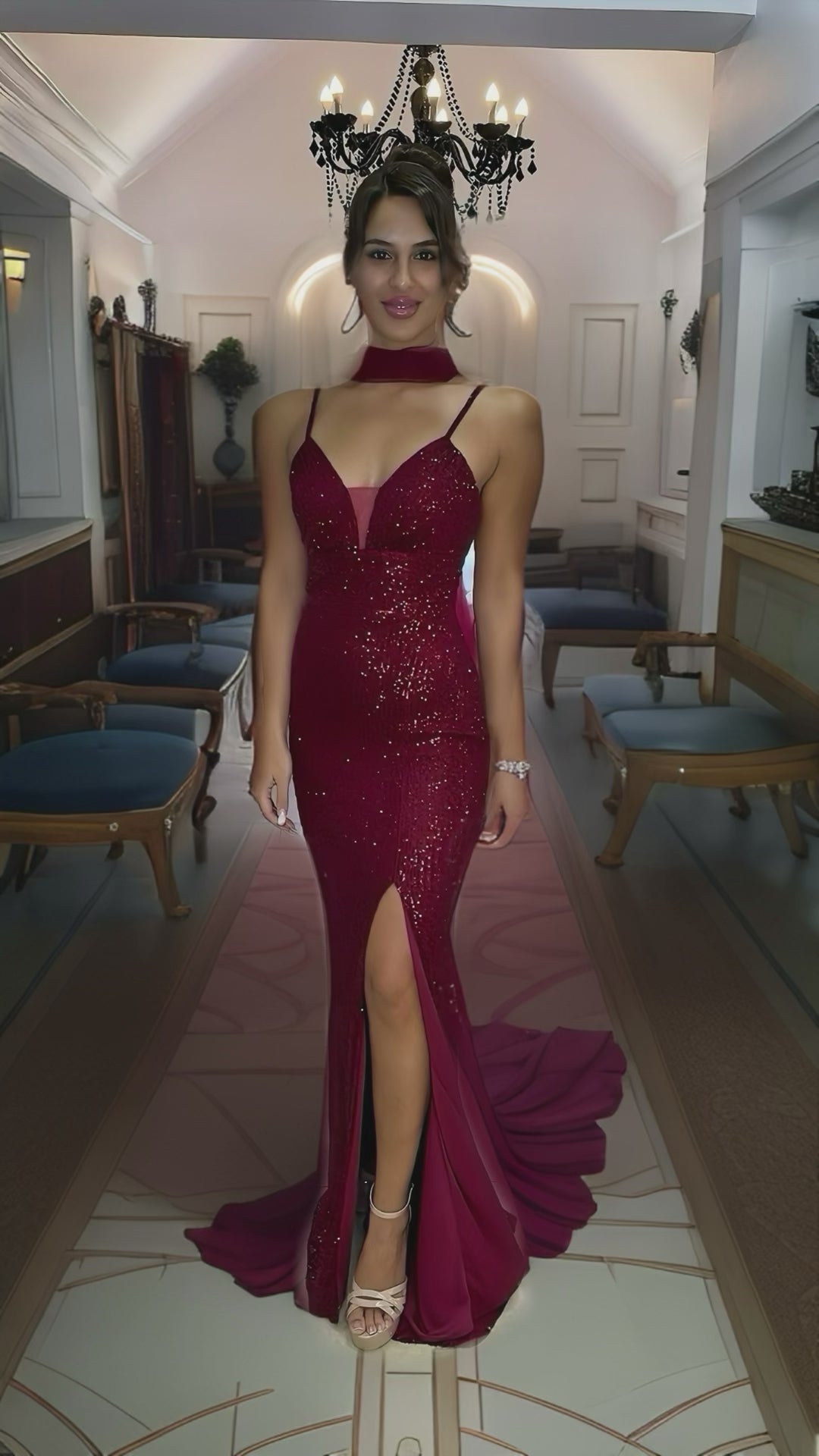 Vestido Largo Lentejuelas Con Tajo Y Corset Atras