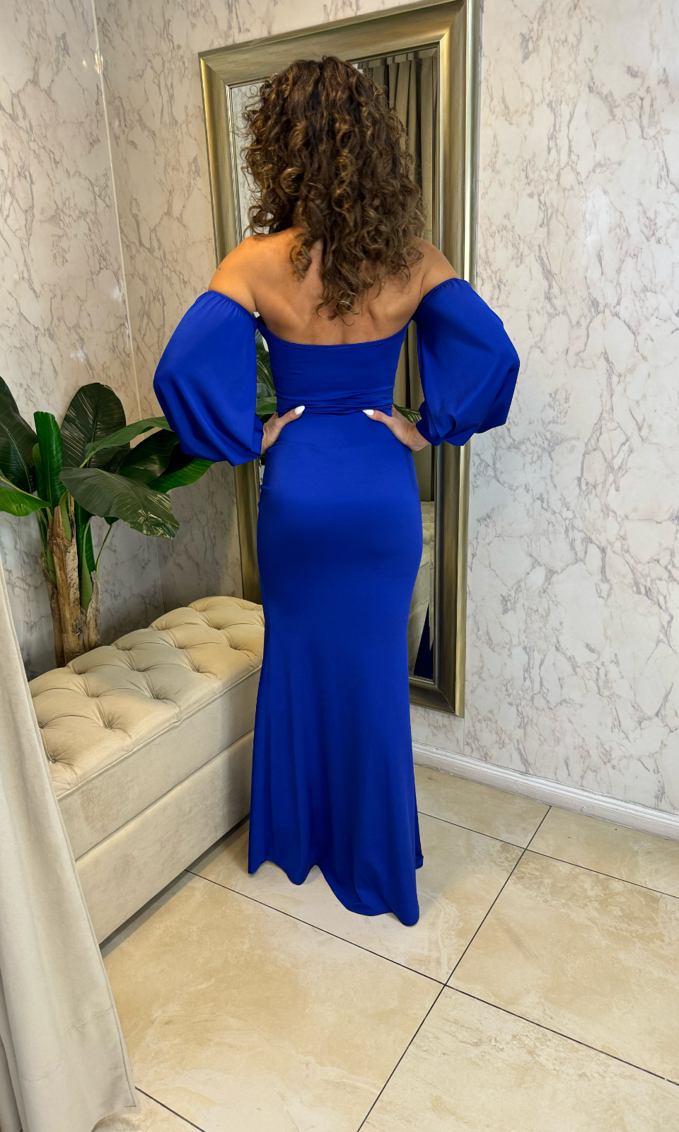 Vestido elasticado con corset, mangas globo y tajo, sexy!