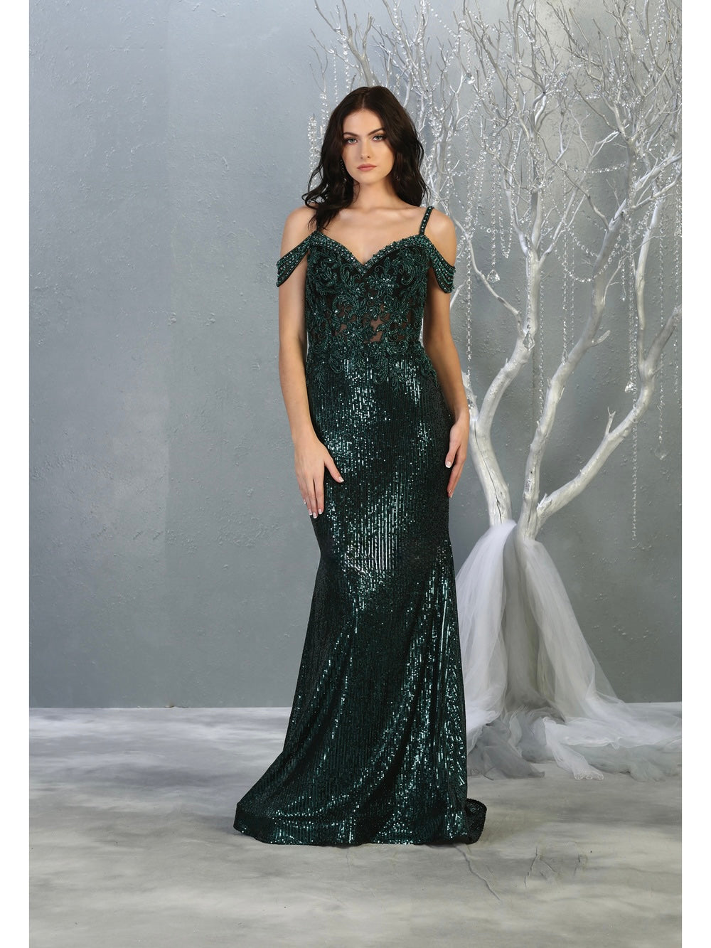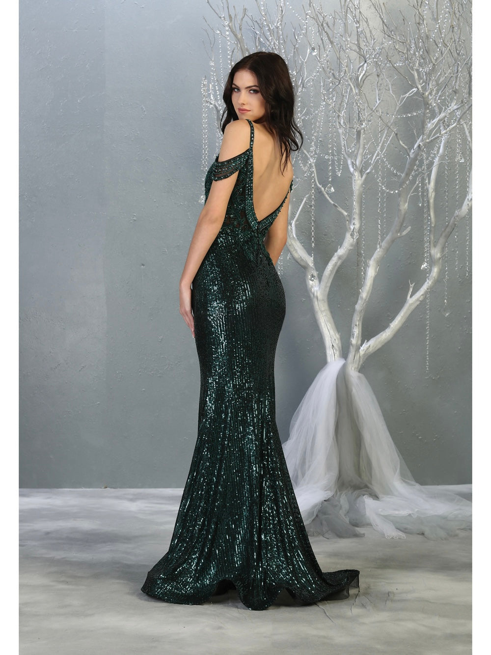 Vestido de gala confeccionado en lentejuelas que capturan la luz con cada movimiento. Destaca por su espalda audaz con escote profundo en V y delantera con corazón y tirantes ajustables. El torso presenta transparencias estratégicas y bordados artesanales que añaden sofisticación. Una pieza diseñada para quienes desean ser el centro de atención en eventos de alto impacto.