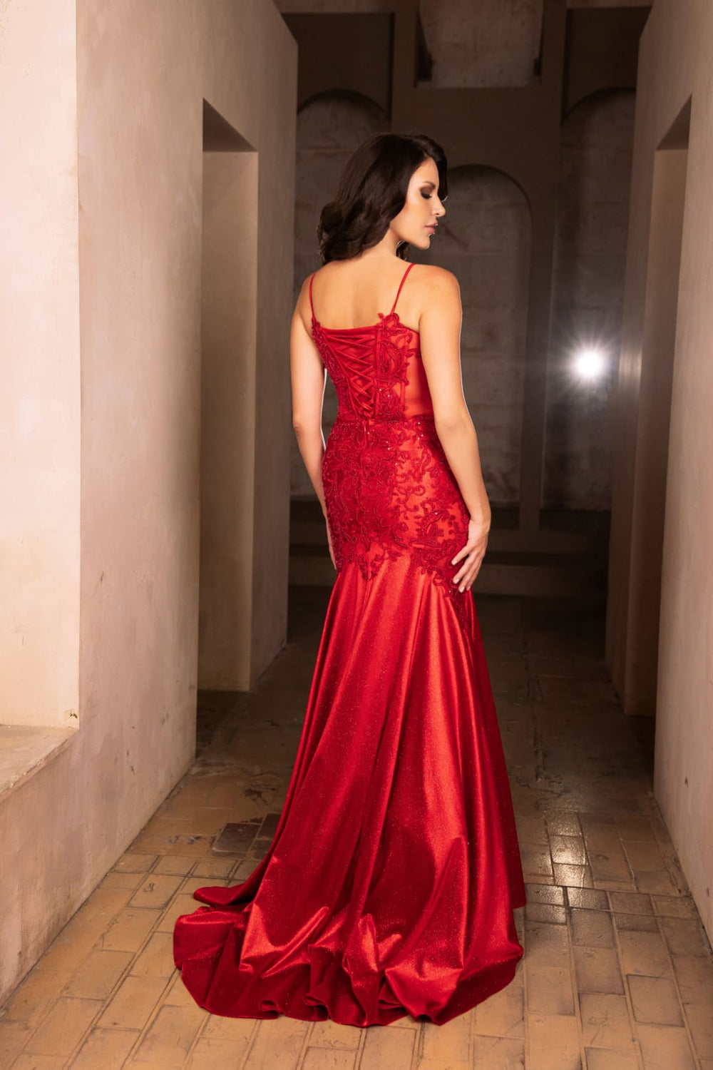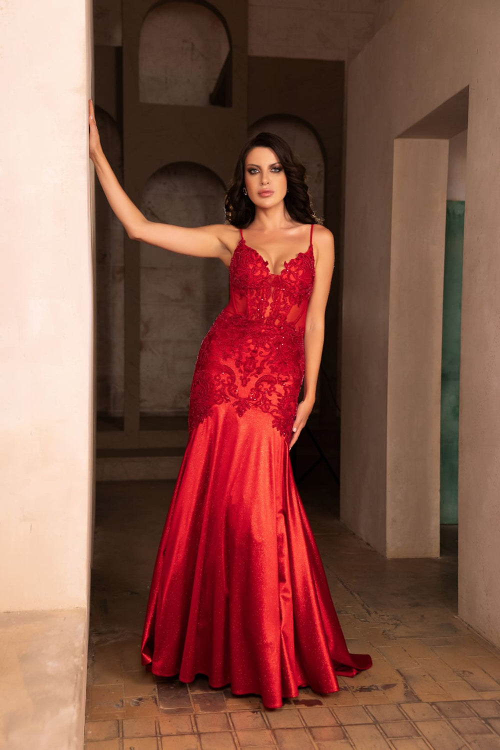 Este vestido largo modelo portofino presenta un corte sirena que realza la figura con elegancia. Sus transparencias laterales en la cadera y el corset aportan un toque sofisticado y sensual, mientras que la tela con suaves brillos añade un acabado espectacular y delicado. Ideal para ocasiones especiales donde se busca un diseño que combine estilo y distinción.