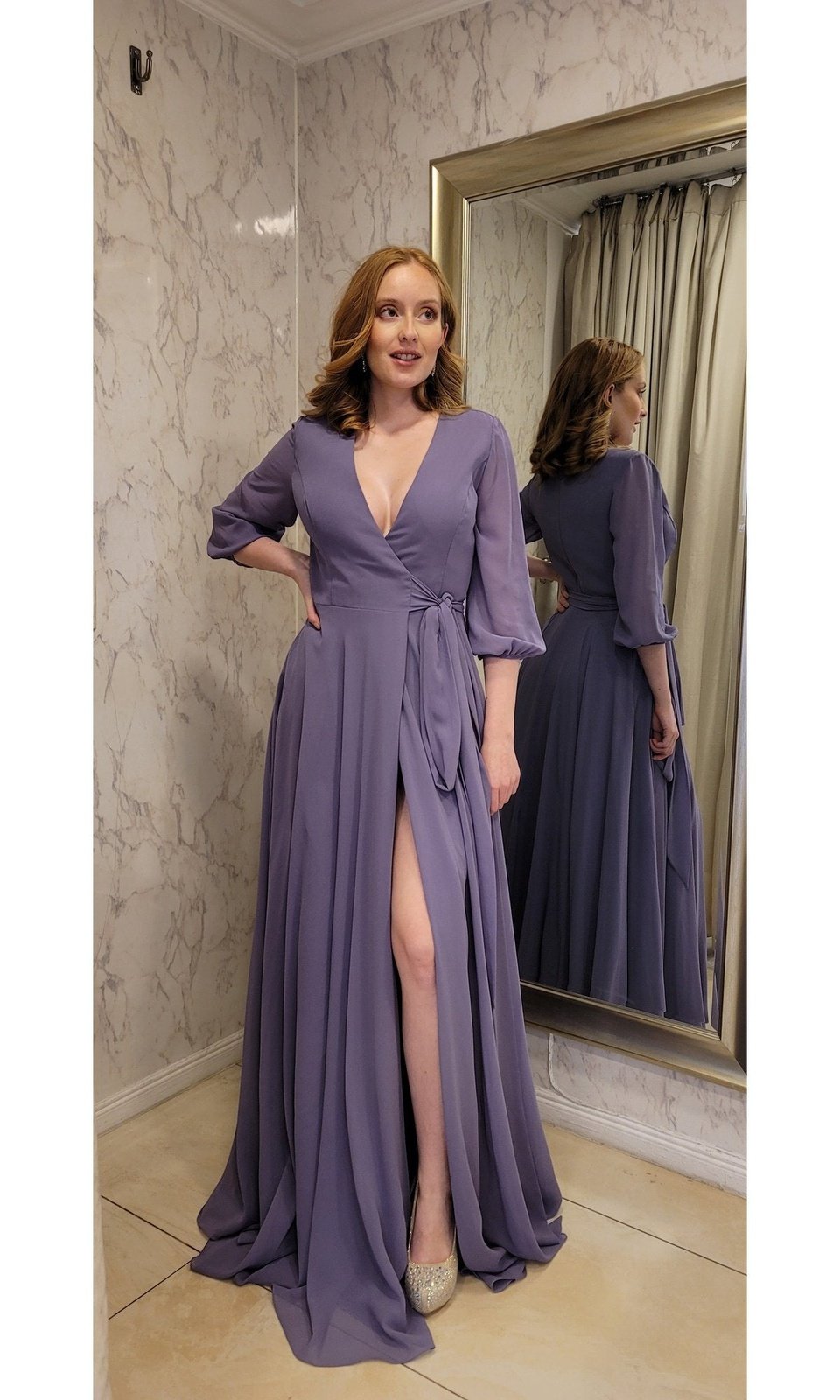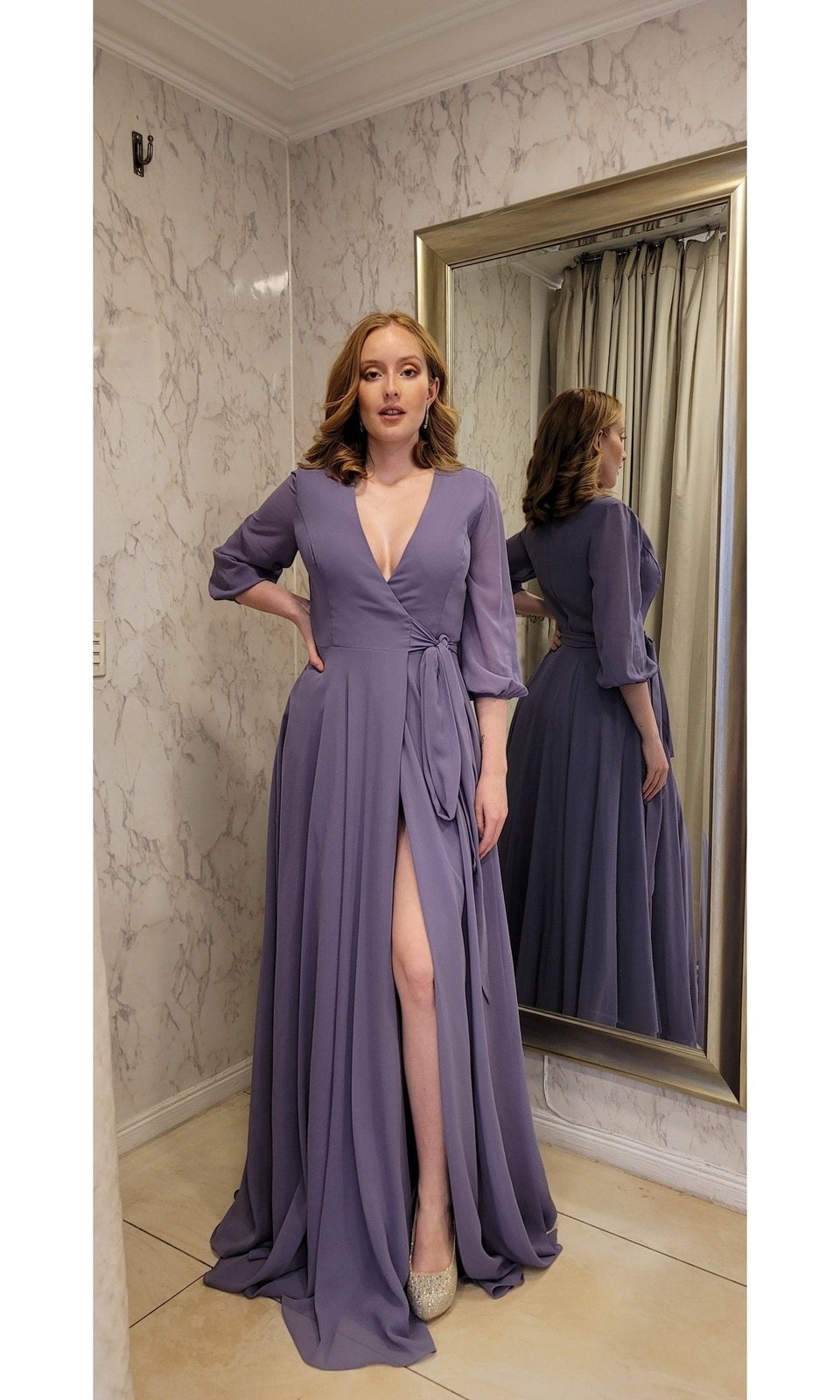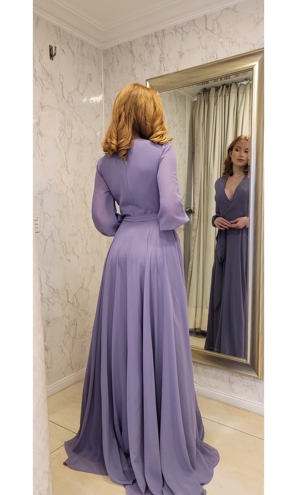 Vestido de gasa suelto con caída recta y mangas, ideal para un evento de tarde noche. Quedarás súper bien vestida y elegante!