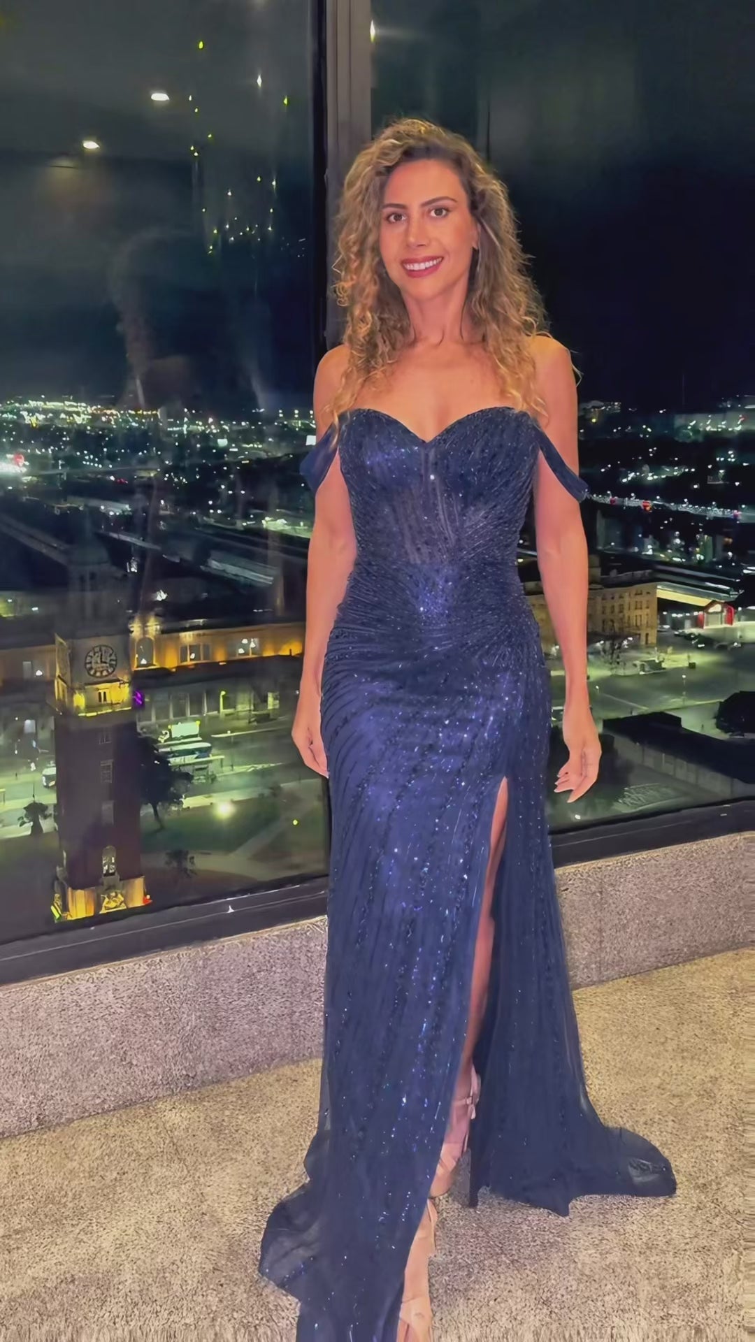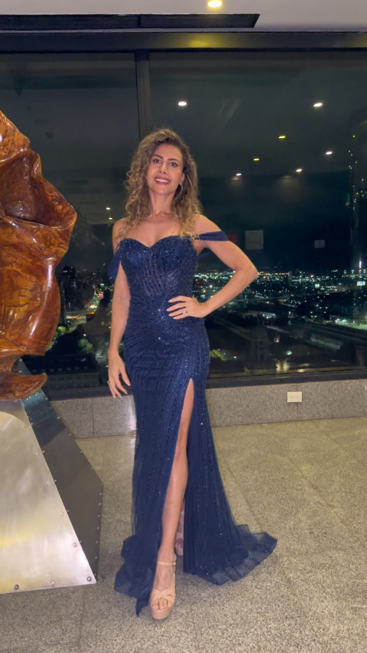 Imagina un vestido que parece esculpido sobre la piel, diseñado para robar miradas y dejar huella. Su silueta entallada realza cada curva con una caída impecable, mientras un delicado trabajo de pedrería recorre el tejido como un mapa de destellos que se encienden a cada paso. El corset estructurado con transparencias estratégicas crea un efecto de “segunda piel” que fusiona sensualidad y elegancia suprema. Un diseño digno de alfombra roja, pensado para mujeres que no solo asisten a un evento, sino que se convierten en el evento. ✨
