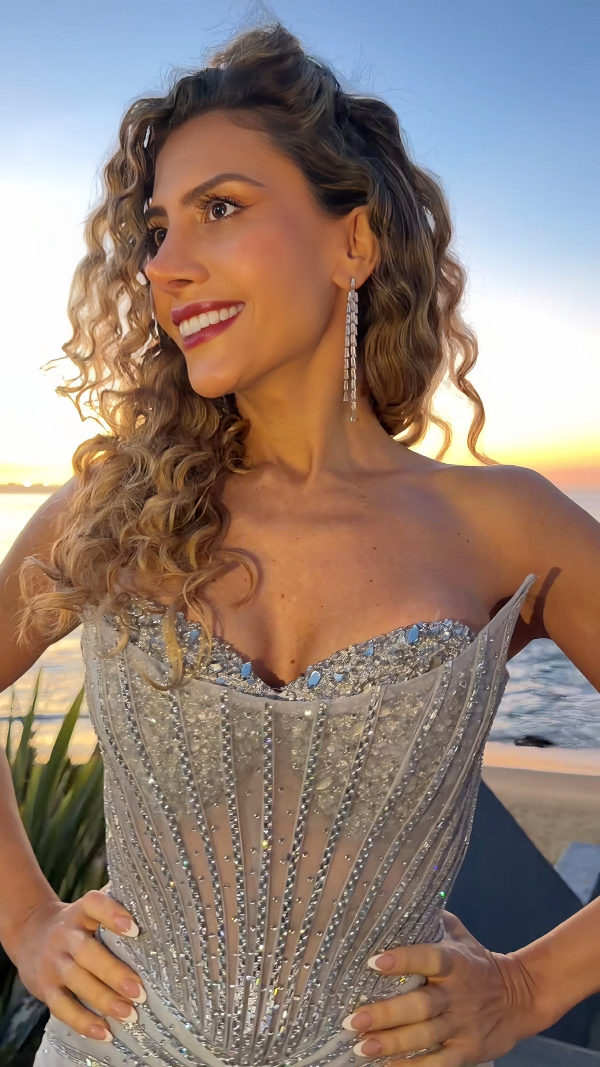 Un diseño que refleja lujo y sofisticación en cada detalle. La silueta ajustada realza la figura, mientras la pedrería meticulosamente bordada en patrones geométricos crea un juego de luces deslumbrante. El escote profundo con tul ilusión aporta el toque sensual perfecto, equilibrado con la elegancia de su confección. Ideal para galas, matrimonios o eventos donde quieras transmitir poder y distinción.