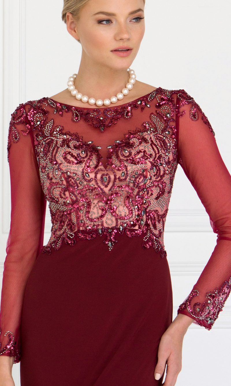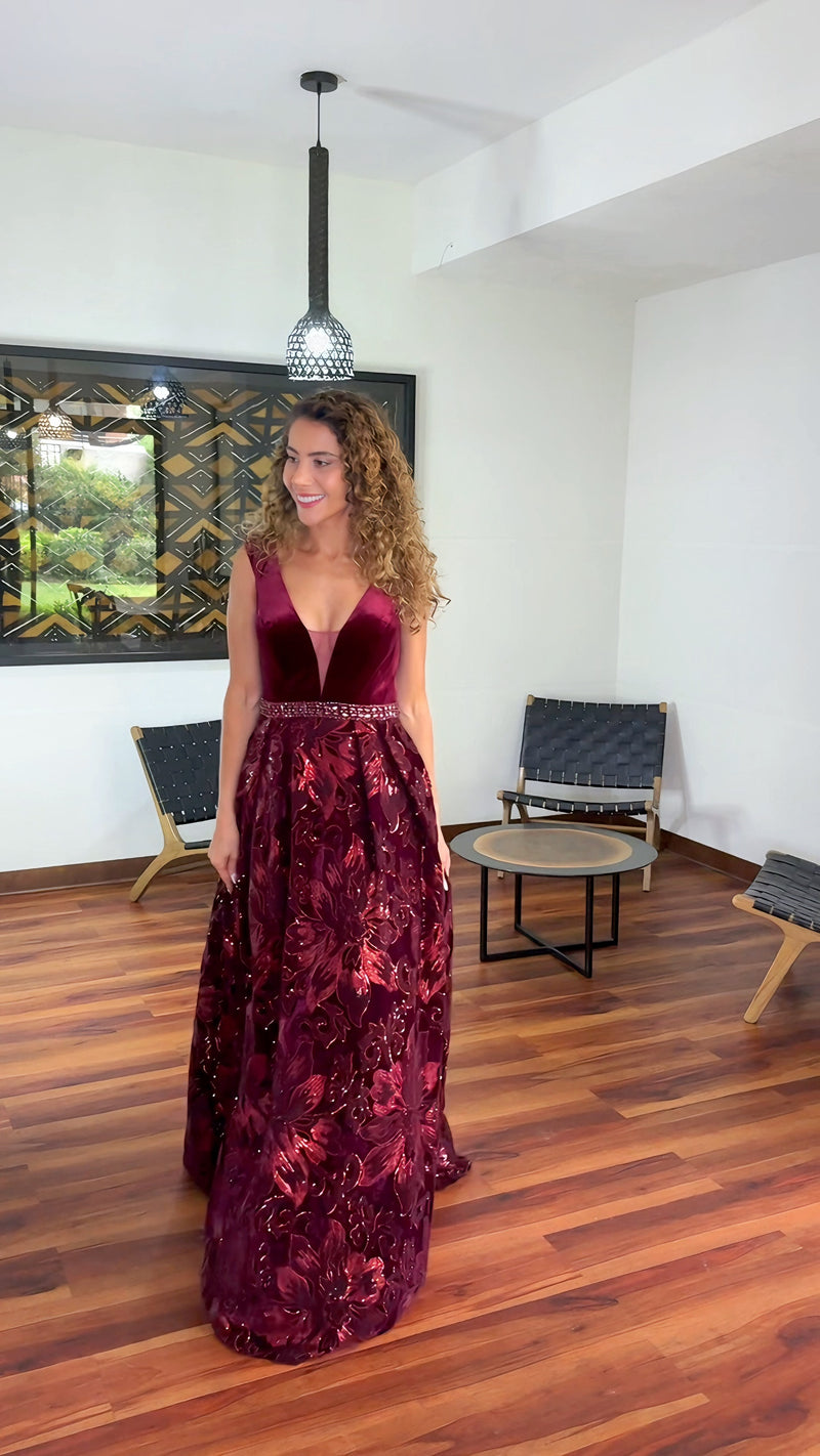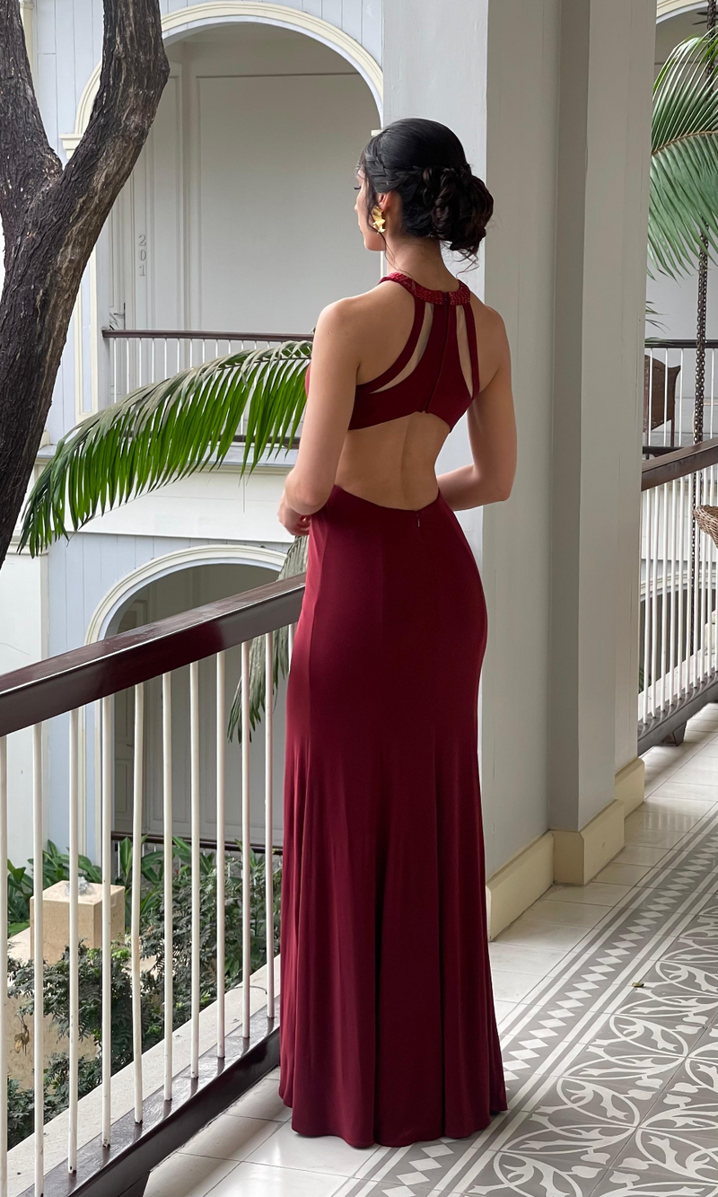 VESTIDO DE FIESTA LARGO L738 BURDEO