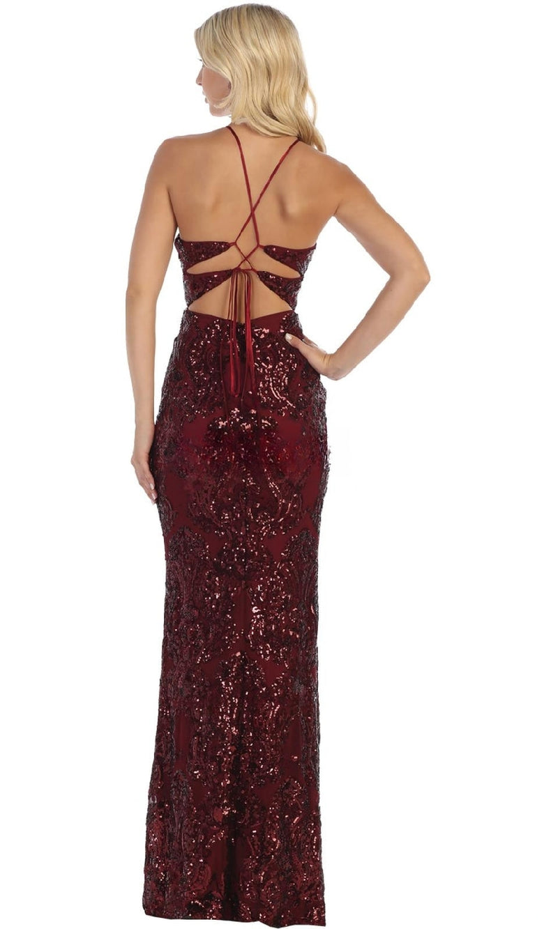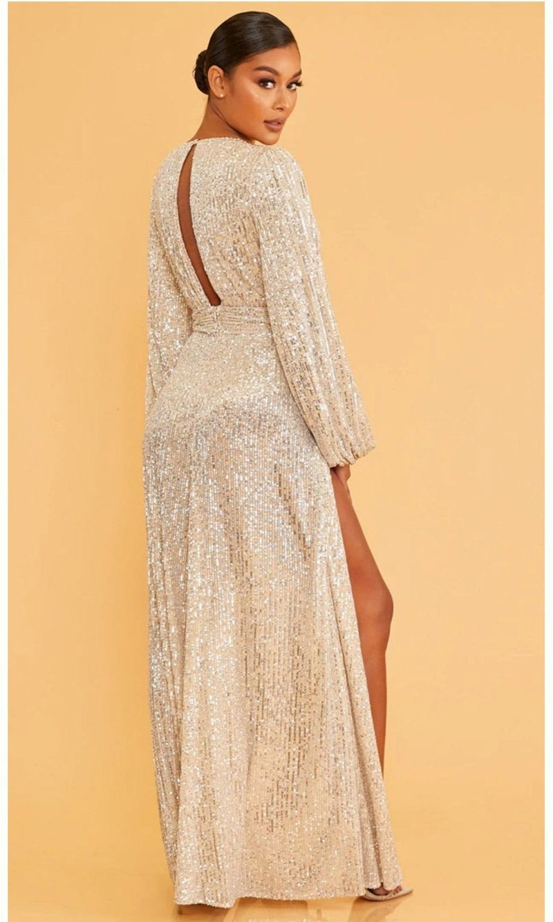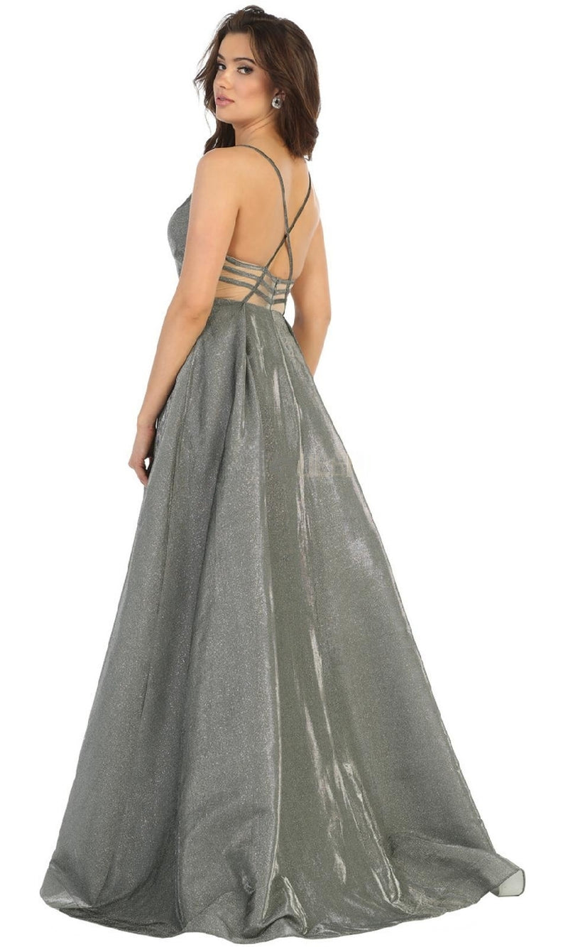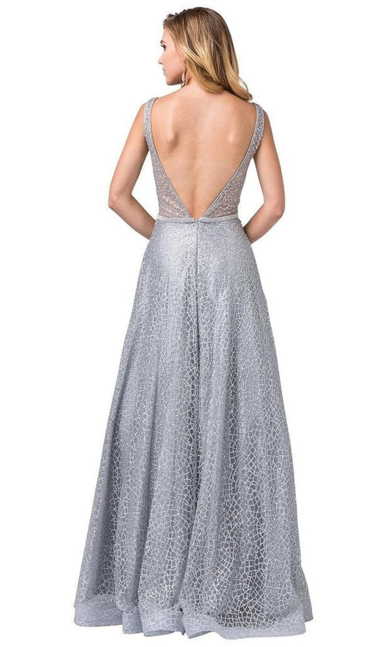 VESTIDO DE FIESTA LARGO L6948 PLATEADO