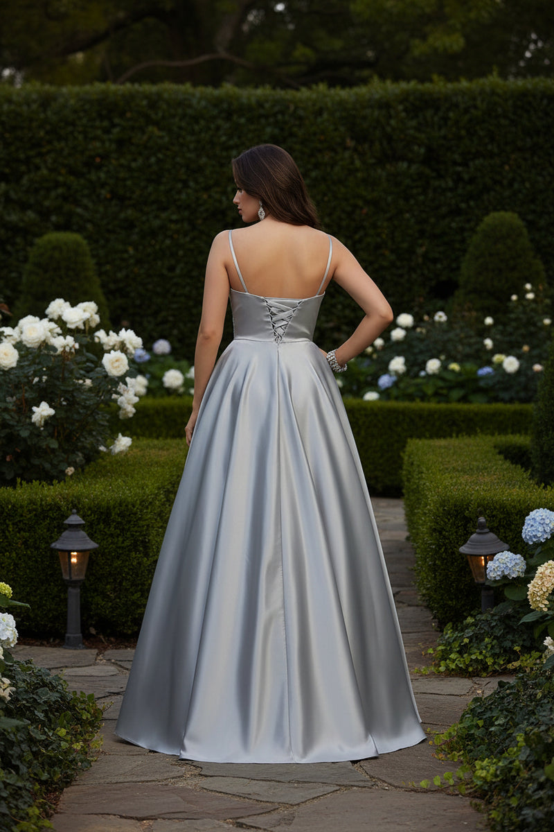 VESTIDO LARGO L2593 PLATEADO