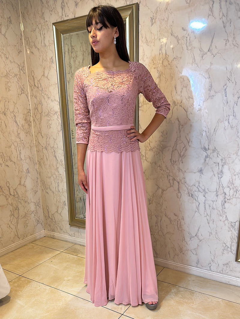 VESTIDO DE FIESTA LARGO GASA L1711Y ROSADO