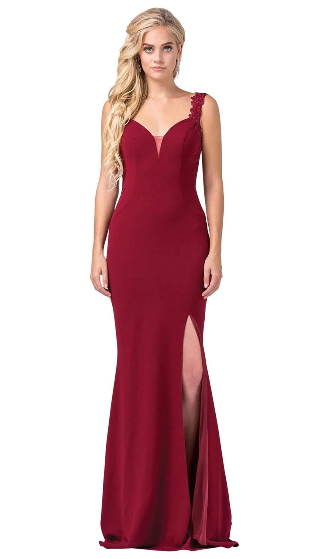 VESTIDO DE FIESTA LARGO L4225 GRANATE