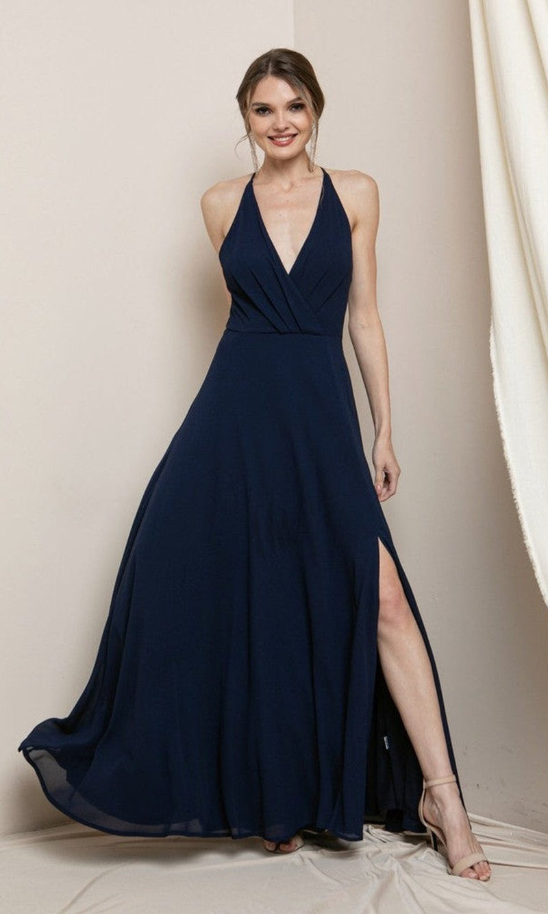 VESTIDO DE FIESTA LARGO L2947 AZUL