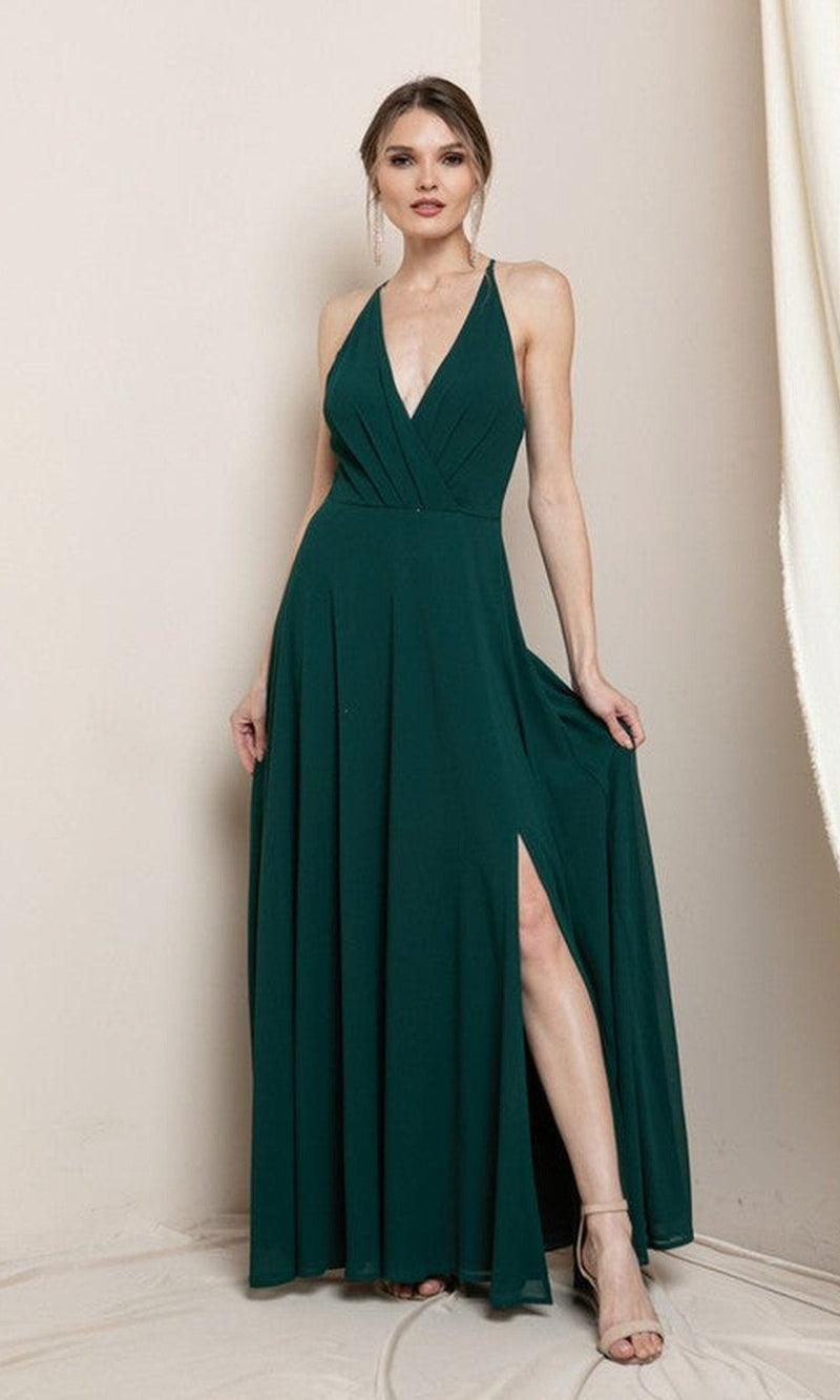 VESTIDO LARGO L2891 VERDE ESMERALDA
