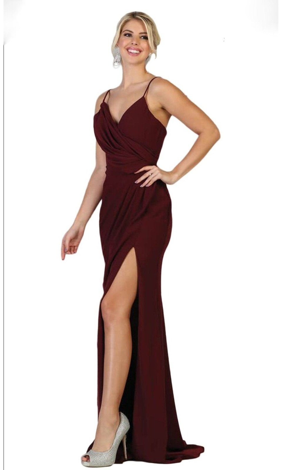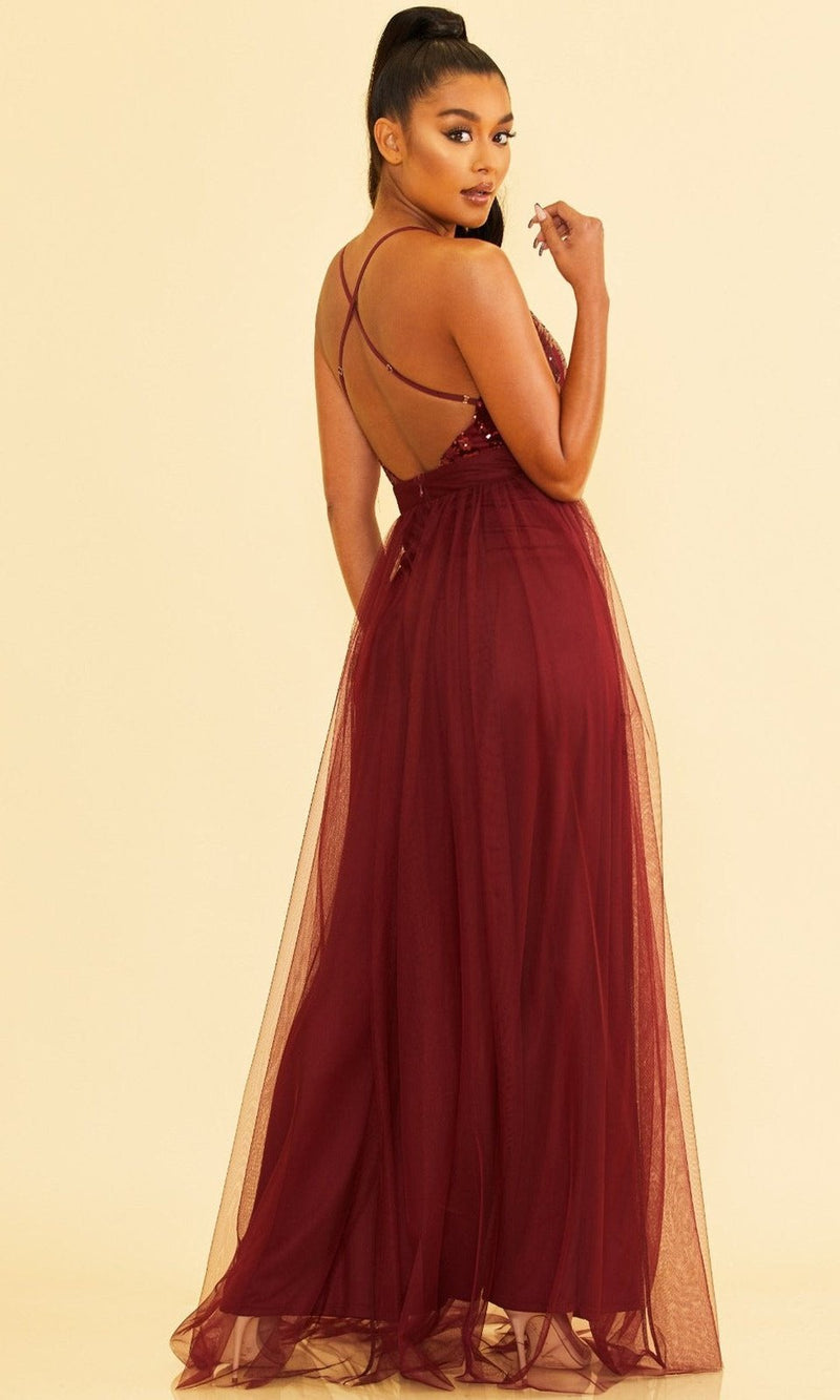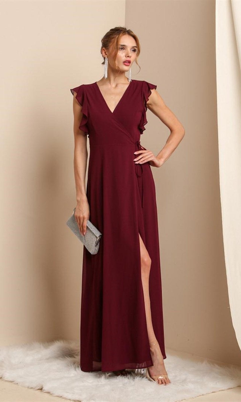 VESTIDO DE FIESTA LARGO L2727 GRANATE
