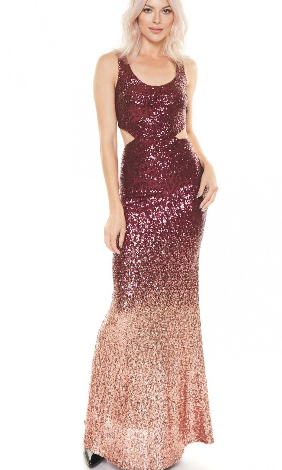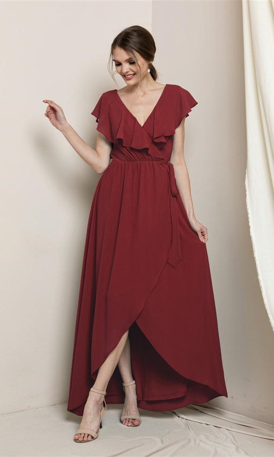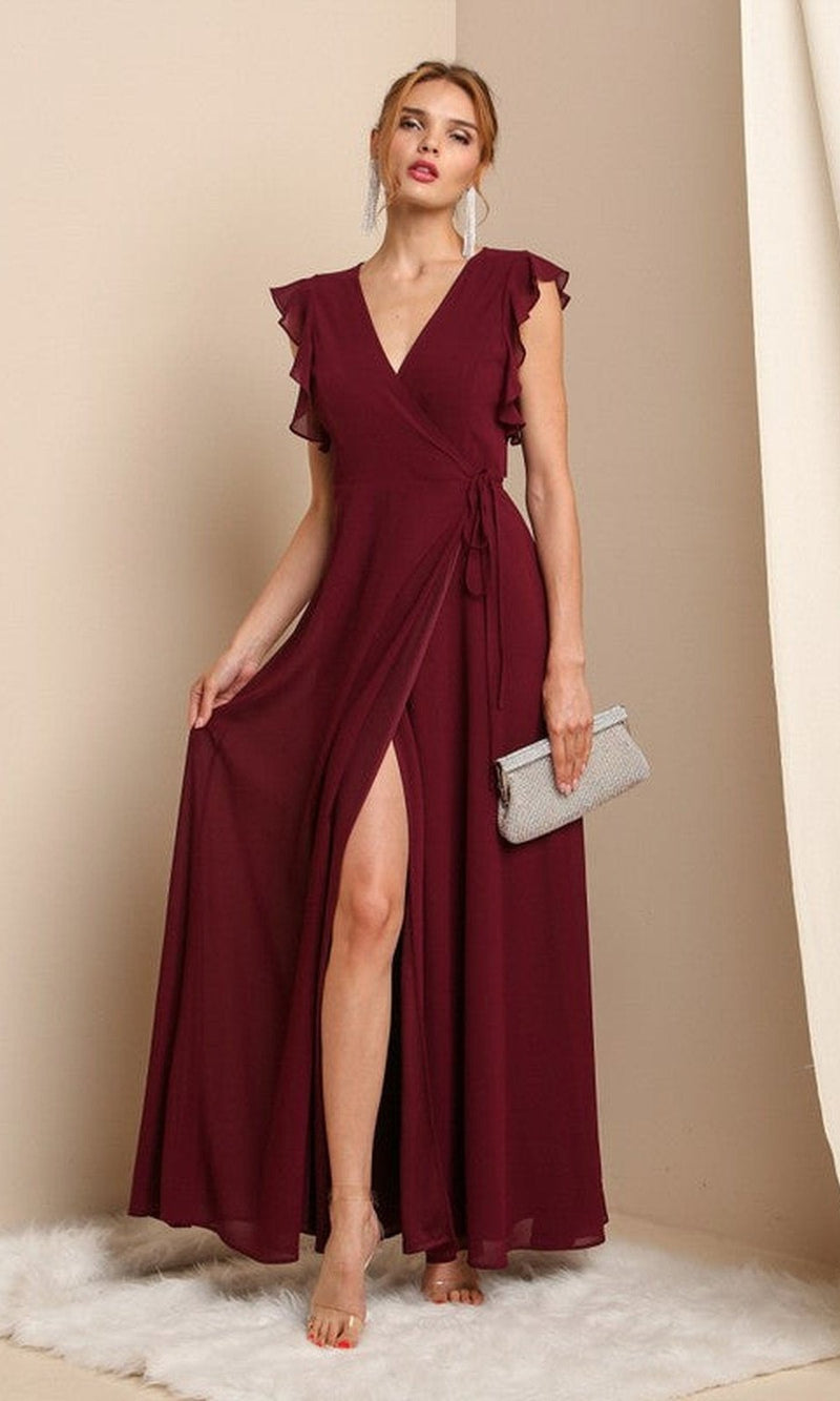 VESTIDO DE FIESTA LARGO L2727 GRANATE