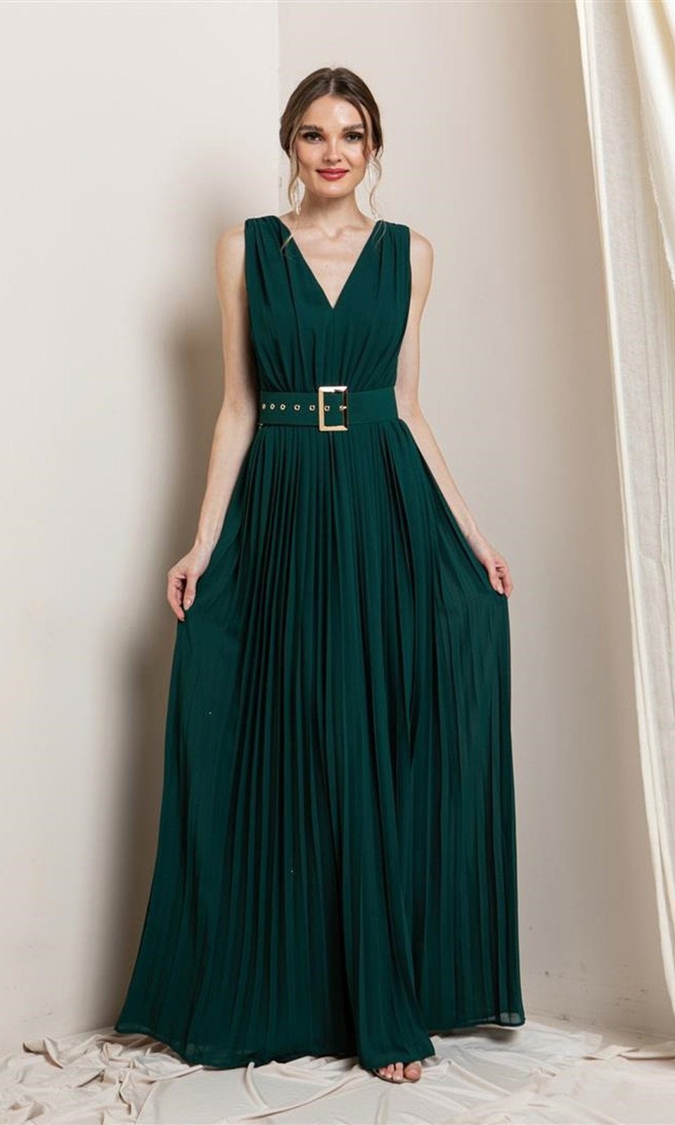 VESTIDO LARGO L19161 VERDE ESMERALDA