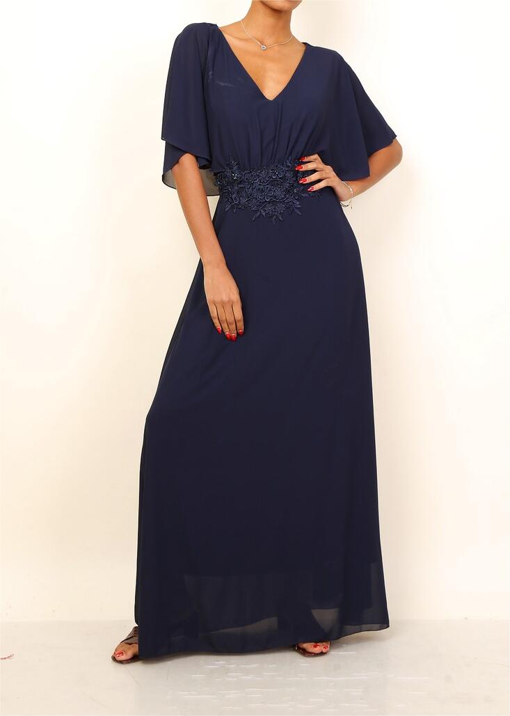 VESTIDO DE FIESTA LARGO L738 AZUL MARINO