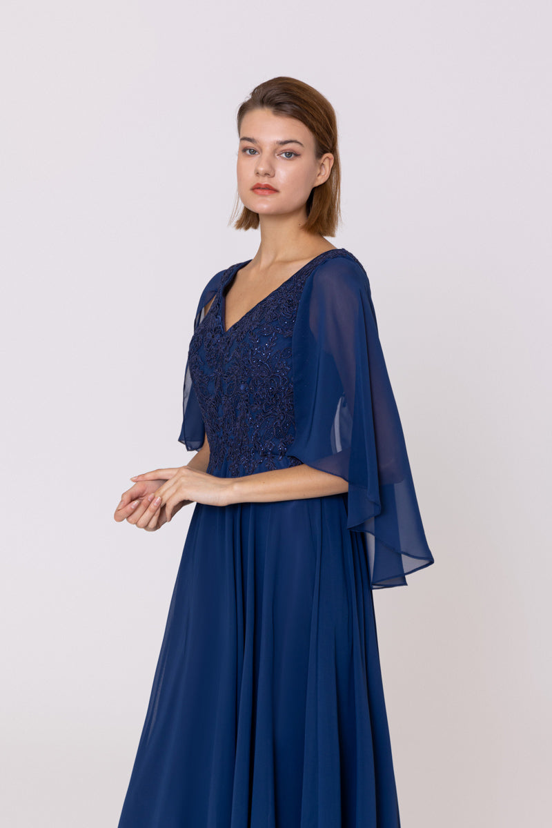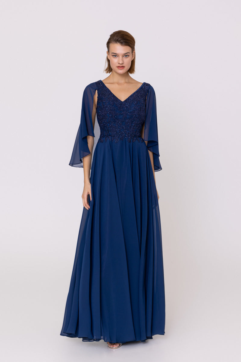 VESTIDO LARGO ANTONELLA AZUL MARINO