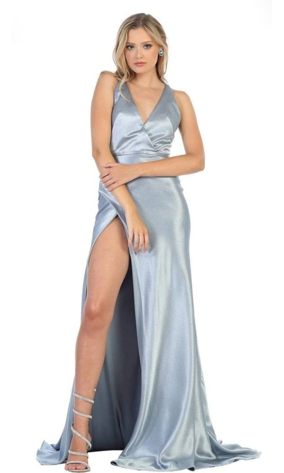 VESTIDO DE FIESTA LARGO GASA L1711Y CELESTE