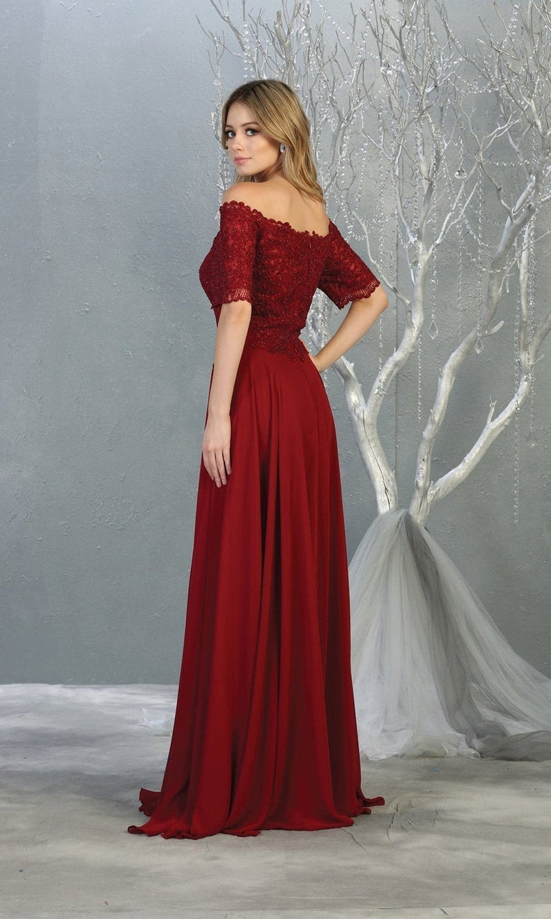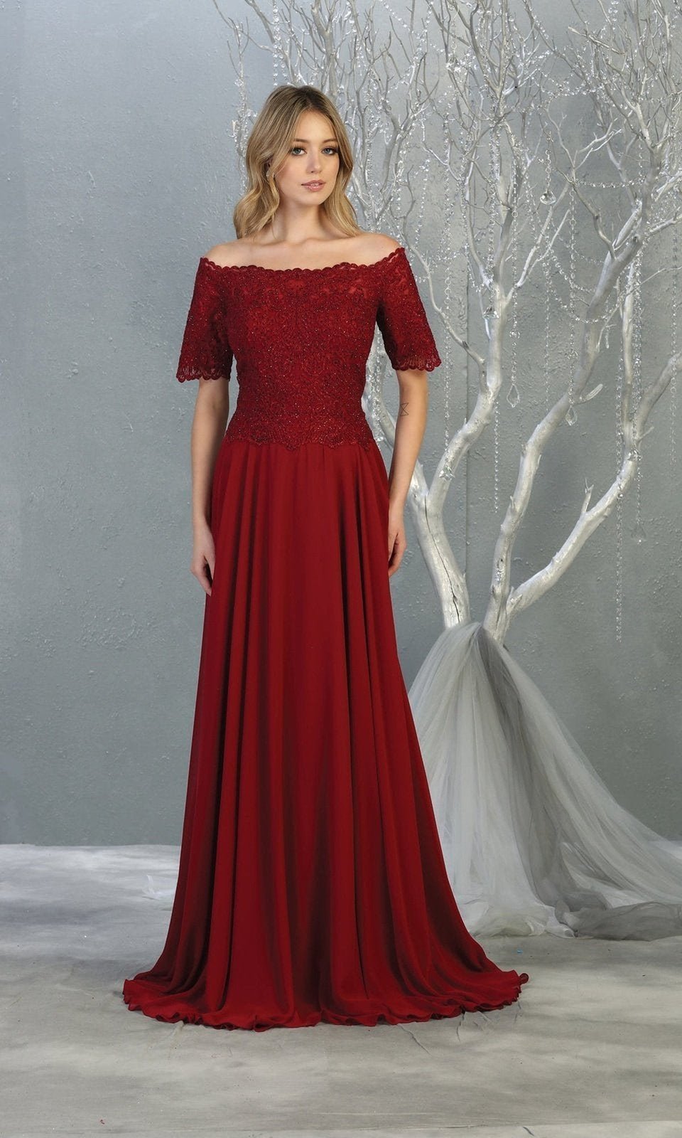 VESTIDO DE FIESTA LARGO CON HOMBROS CAÍDOS L4278 ROJO
