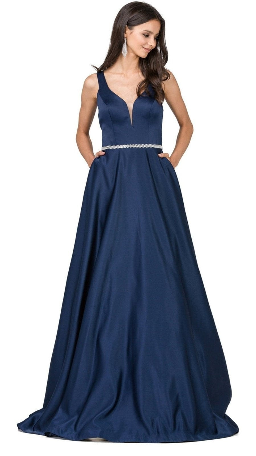VESTIDO DE FIESTA LARGO L4244 AZUL MARINO