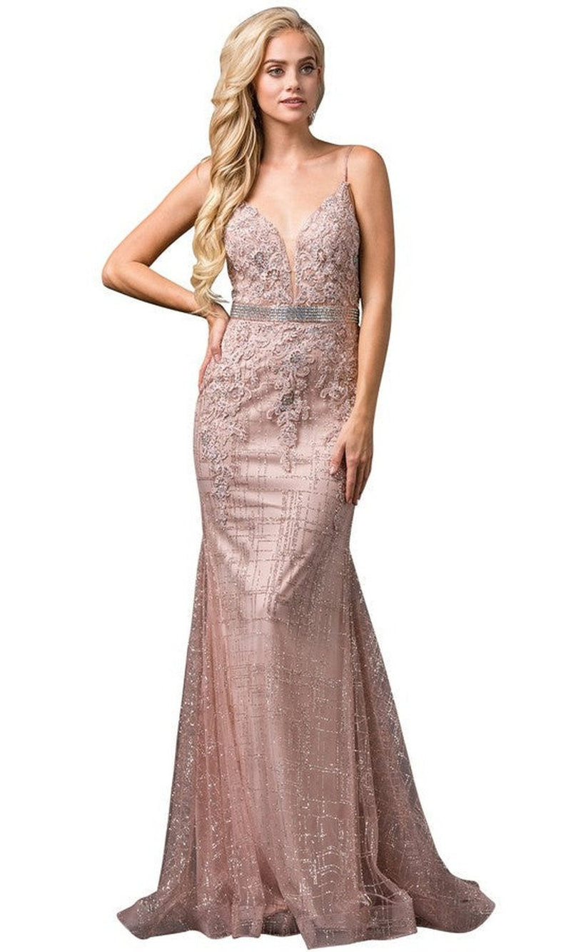 VESTIDO DE FIESTA LARGO L4254 ROSADO