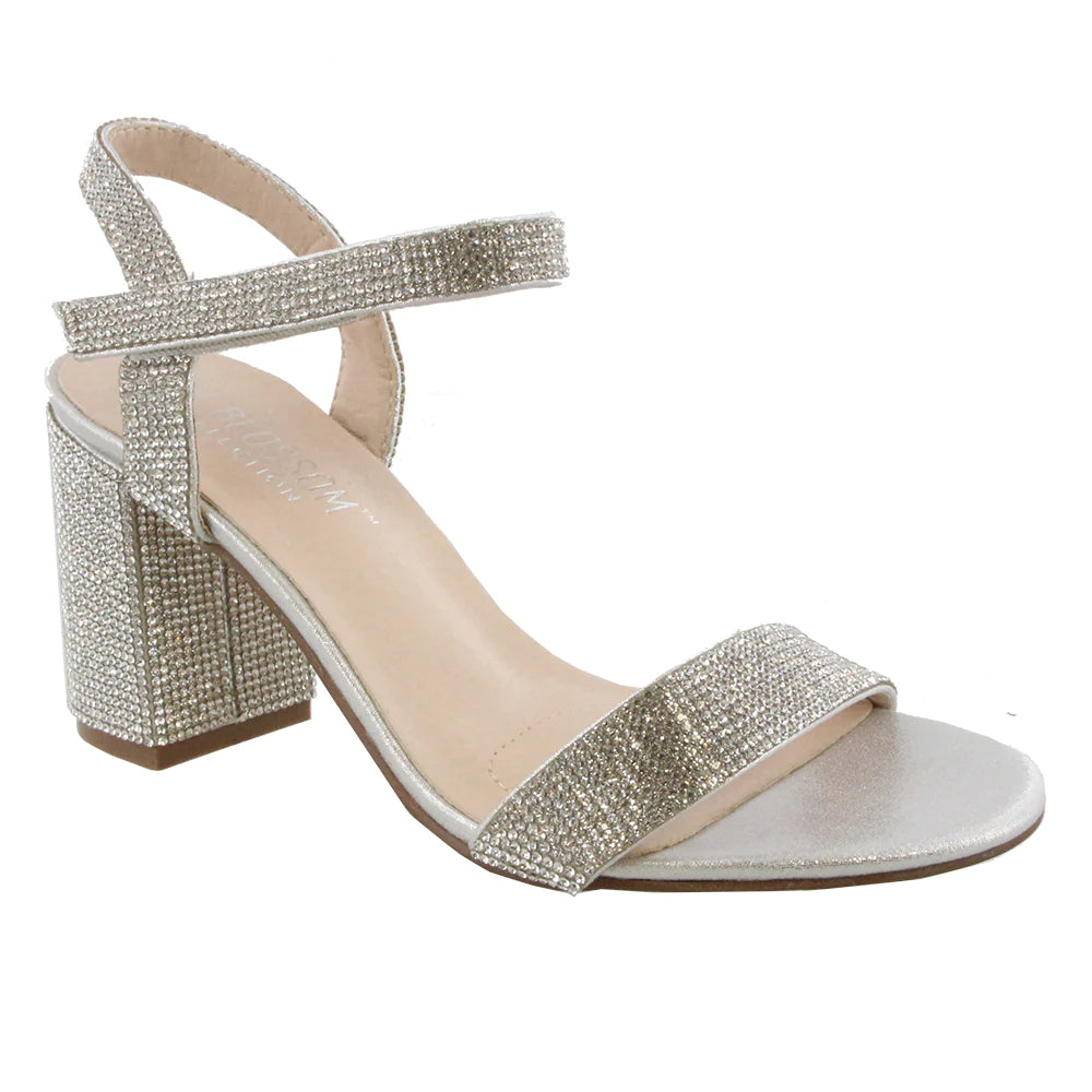 Sandalia de taco grueso y firme muy comodo,acolchada la planta, strass de alto brillo en plateado, muy lindo!