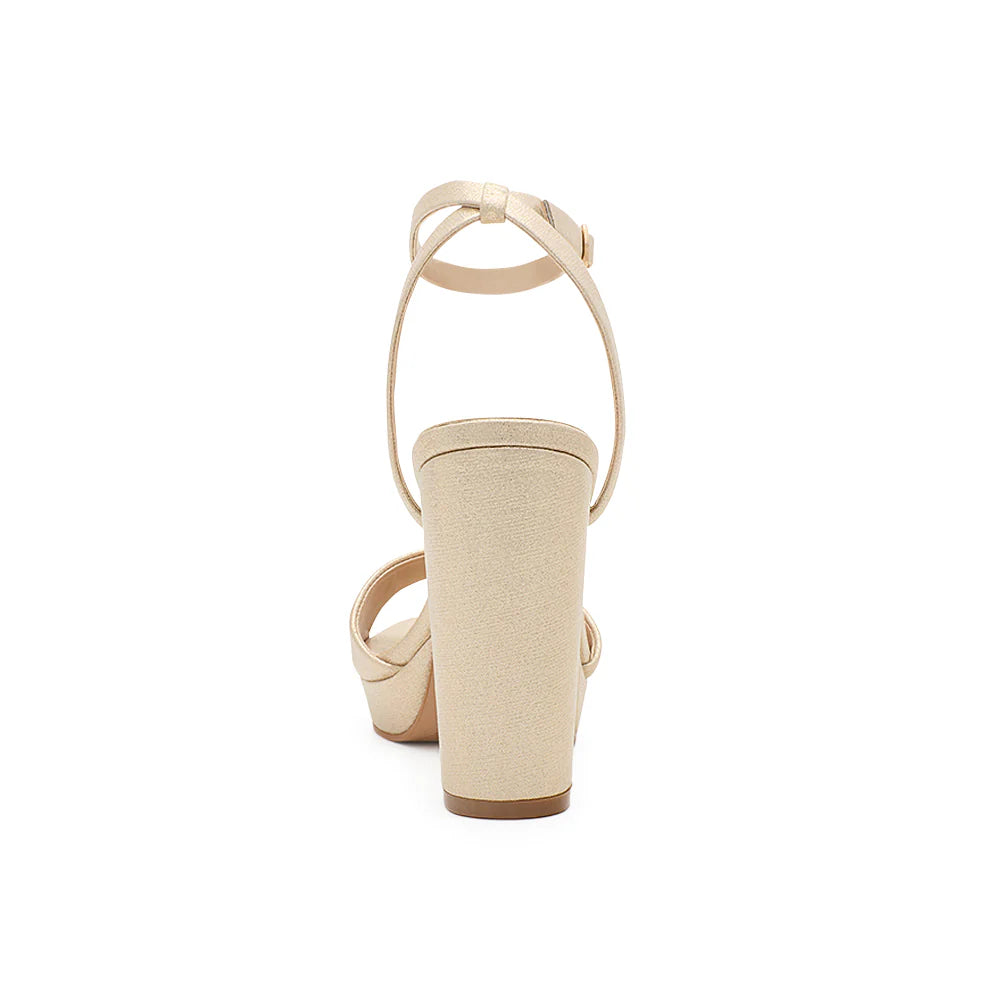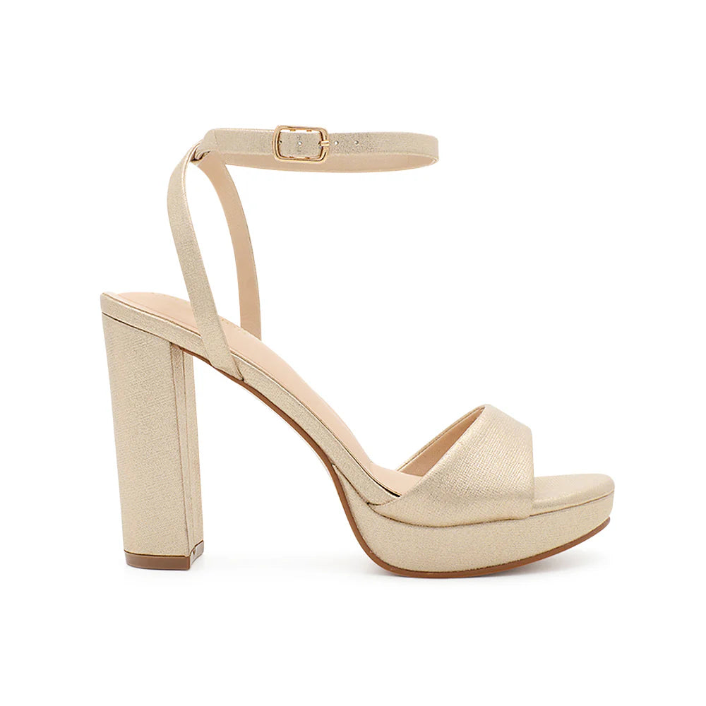 Sandalia  de plataforma con tacón ancho alto y diseño minimalista, perfecta para un look elegante y versátil. Su pulsera ajustable al tobillo garantiza sujeción y comodidad, ideal para bodas, graduaciones y eventos de noche donde el brillo discreto y la sofisticación son protagonistas.